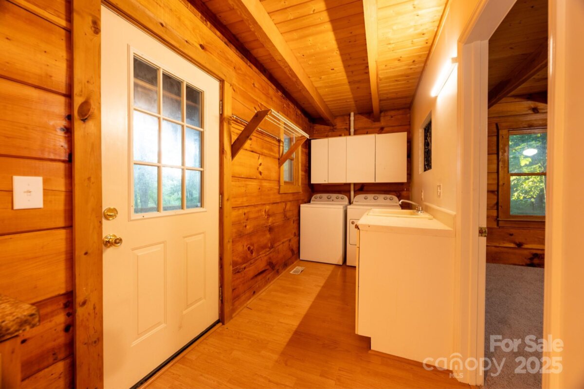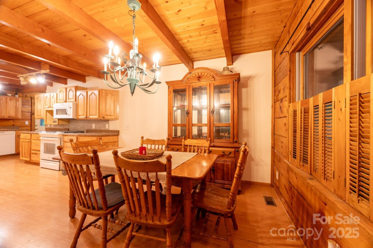 Short term rentals allowed! Exceptional Mountain Log Cabin in Desirable Fox Den Subdivision..Entering the Log Cabin with Soaring beamed ceiling and T&G pine, it features a two story stucco gas-log fireplace with tile accents, stained glass window & Mexican tile flooring. Then the spacious great room opens out to 2 huge covered decks. The First floor also features primary bedroom with bath and includes walk-in closet. Then an Open Loft provides one additional bedroom, a bonus room & a sitting area. The Large Spacious Kitchen features Custom Hickory cabinets and Modern refrigerator & microwave and adjoins to the lovely dining area. The downstairs features a finished family room and includes a full bath and an efficiency kitchen with bar seating. The lower level also offers a Huge deck which is accessible from the 2 car oversized garage & big parking area. The upper paved driveway allows for no-step entrance to main level and the beautiful wooded area provides quiet privacy. Brand new roof, May 2025!