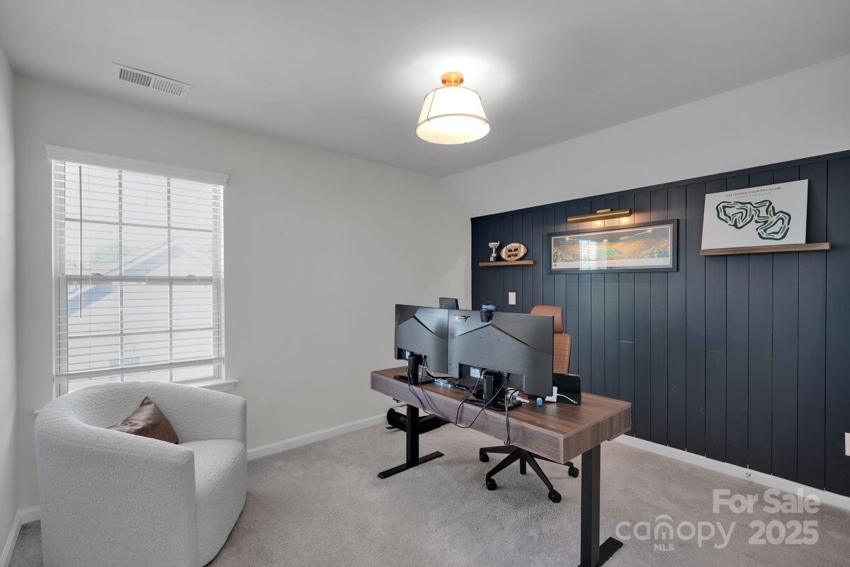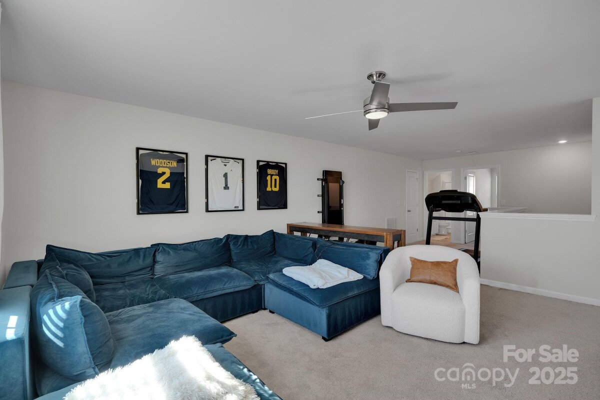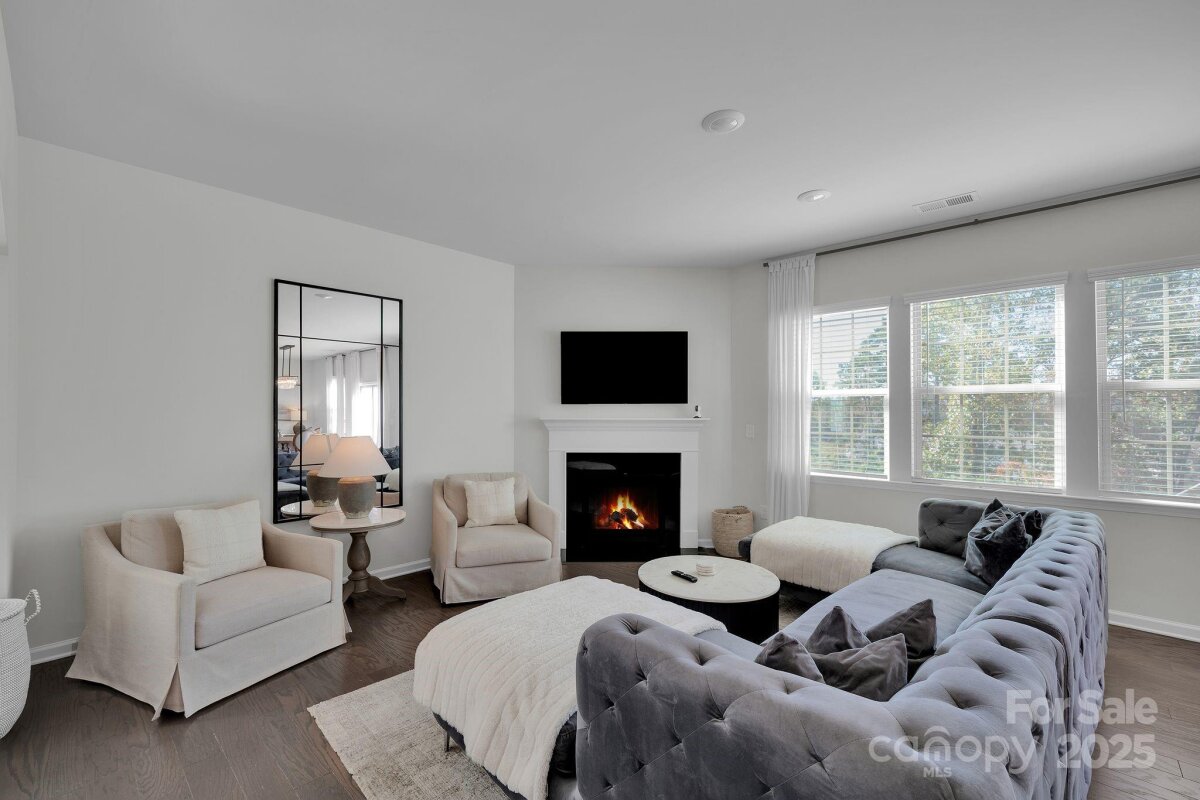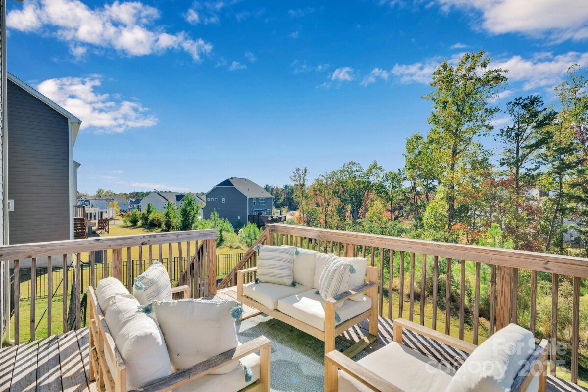 Located in the desirable, environmentally protected Lanterns neighborhood of The Palisades, this beautiful Davidson Plan offers three levels of spacious and versatile living. The main floor features an inviting open-concept layout with a modern kitchen, breakfast area, and living room centered around a cozy corner fireplace, perfect for everyday living and entertaining. A formal dining room, private study, and convenient powder room complete the first level. Step outside to enjoy a large paver patio with a built-in outdoor fireplace and a fully fenced backyard, ideal for gatherings or quiet evenings. Upstairs, the primary suite impresses with its size and style, featuring a spa-like bathroom and walk-in closet. Three additional bedrooms, a full bath with dual vanities, a loft, and laundry room provide plenty of room for everyone. The third floor offers even more flexibility with a bonus/loft area, custom built-ins, and a fifth bedroom that could easily serve as a second office or guest suite. Additional highlights include permanent Trimlight exterior lighting, upgraded Pottery Barn fixtures throughout the first floor, and a prime location across from the 13th hole—offering convenience and privacy with no future homes planned in front. Residents enjoy access to The Palisades Residents Club, featuring pools, fitness center, sport courts, playgrounds, and more—all just moments from Lake Wylie.