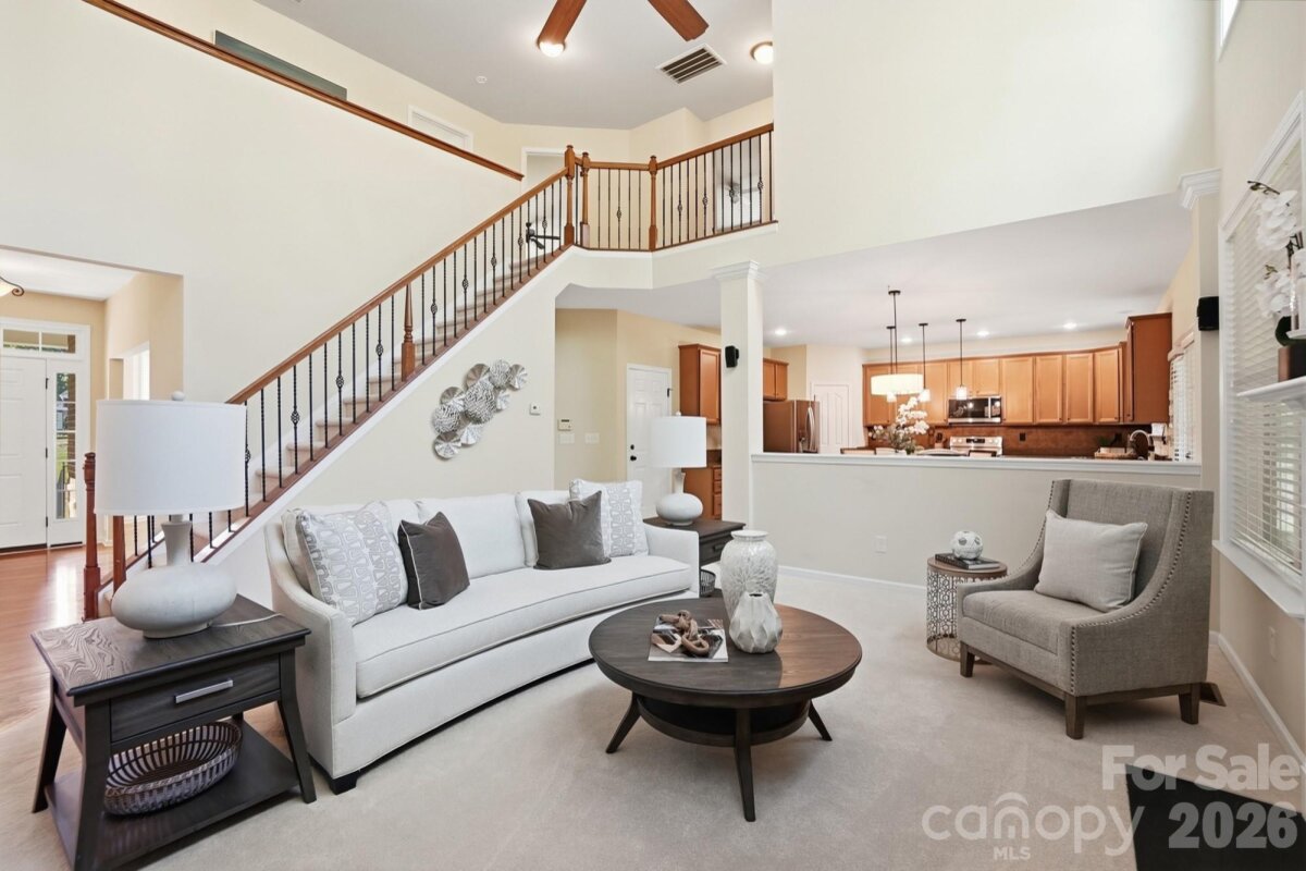 Welcome to this beautiful two-story brick home located in the highly sought-after Olde Sycamore. Step into the stunning two-story great room highlighted by a gas log fireplace and expansive windows that flood the space with natural light. The bright breakfast nook sits just off the kitchen, which features an island with seating, pendant lighting, a tile backsplash, computer niche, and abundant storage. A formal dining room with wainscoting accents and a stylish chandelier anchors the front of the home, while double doors across the foyer open to a private home office or study. A main-level bedroom with access to a full bath adds convenience and flexibility for guests or multigenerational living. Upstairs, the spacious primary suite offers a serene retreat with an ensuite bath that includes a dual-sink vanity, soaking tub, and walk-in shower with glass door. Three additional bedrooms share a full hall bath, and a large bonus room provides excellent versatility - perfect as a media room, playroom, or even a sixth bedroom. The fully fenced backyard provides a private outdoor retreat complete with a saltwater hot tub - ideal for relaxing and enjoying the crisp autumn evenings. Whether you’re hosting friends or unwinding after a long day, this backyard oasis offers the ideal space to recharge. Known for its picturesque, tree-lined golf course, Olde Sycamore residents also enjoy access to a variety of additional amenities including a clubhouse, community pool, and tennis courts, all designed to complement an active lifestyle. Conveniently located just minutes from Mint Hill Veterans Memorial Park, you’ll have even more opportunities for recreation with additional tennis courts, playgrounds, walking trails, and open green spaces. This inviting home offers the perfect blend of relaxation, recreation, and community - all just a short drive from the shops and restaurants of Mint Hill. Additional features include new stainless-steel appliances and LVP tile in the kitchen.
