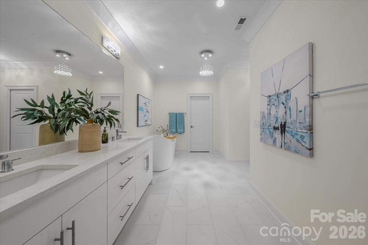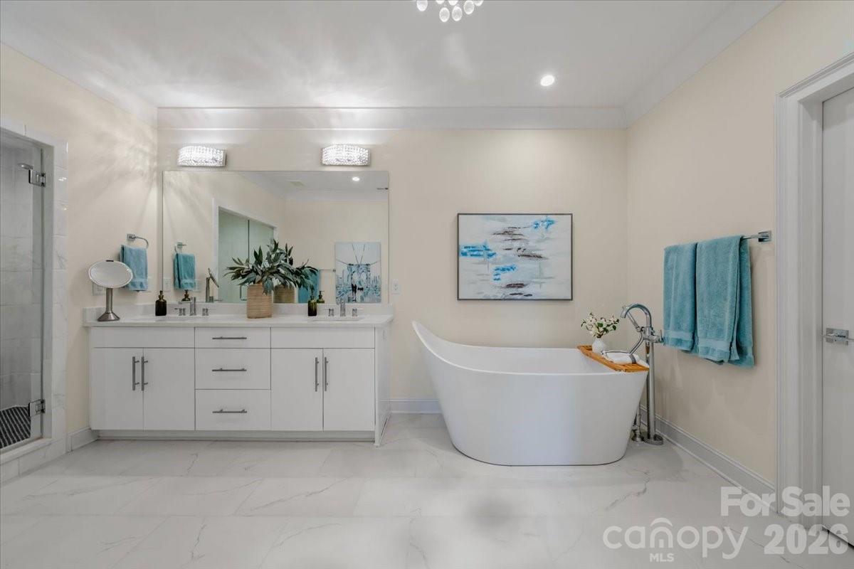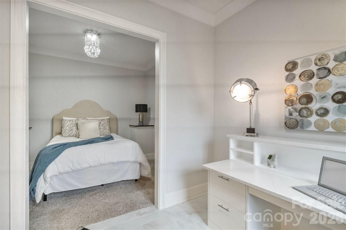 Welcome to one of Ballantyne’s most unique and versatile luxury opportunities, two custom homes seamlessly brought together under one roof. Designed for flexibility and elevated living, this full brick estate offers the perfect solution for multi generational households, private guest accommodations, or income producing potential. Originally built as two separate custom residences of approximately 2,500 square feet each, both with private entrances, the home delivers unmatched adaptability while maintaining a cohesive and refined feel. Each level lives like its own residence, complete with full kitchens, spacious living areas, primary suites, and dedicated laundry, creating independence without sacrificing connection. There is also an easy opportunity to open and fully connect both sides if desired, with original builder plans available. The main level showcases refined everyday living with rich hardwoods, curated finishes, an open layout, office, flex space, and elegant entertaining areas. The chef’s kitchen features custom lighting and detailed finishes, flowing into inviting living spaces anchored by a fireplace. The upper level expands the possibilities with its own bonus room and a complete second living environment, ideal for extended family or rental use. At the entrance, there is a 1/2 bath and flex space/mudroom on the main level before going up the stairs. Once in the living area, thoughtful details elevate the home throughout, including fireplace, a wet bar, walk in closets, and a spa inspired primary suite with a vaulted ceiling, oversized shower, and garden tub. Step outside to enjoy layered outdoor living with covered porches, terrace spaces, a private deck, and a fire pit designed for gathering and relaxation. The beautifully maintained grounds are supported by an in ground irrigation system, with ample space for a future pool or outdoor kitchen. With garage capacity, additional parking, and a beautifully manicured lot, this property offers rare scale, flexibility, and long term value in one of Charlotte’s most sought after areas, just minutes from Ballantyne’s premier shopping, dining, and top rated schools.
