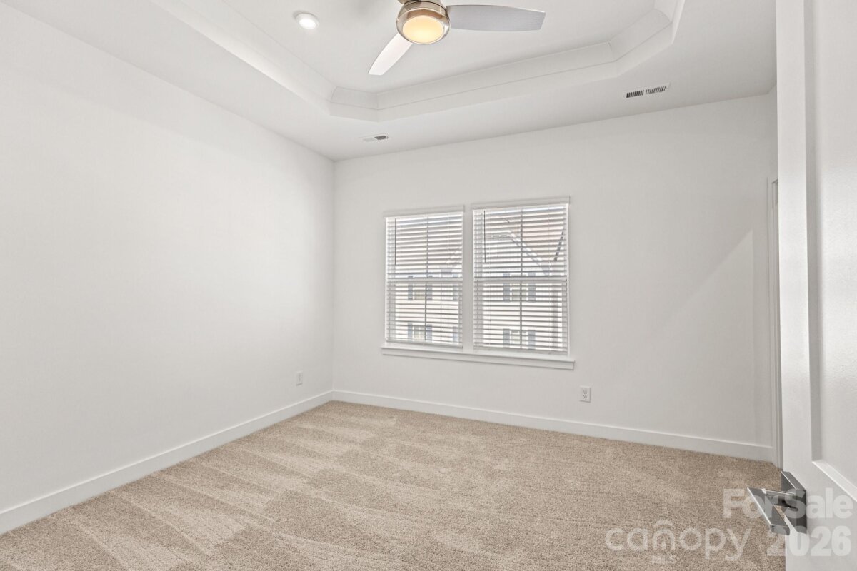 STUNNING 2023 3-StoryTownhome that has been recently refreshed! Get the New Construction feel without the New Construction price! Walk in the front door to find an AWESOME office space and a flex space perfect for a playroom, storage, or whatever fits your needs! The main floor hosts all main living areas. The BEAUTIFUL black kitchen cabinets are sure to be the focal point of your home when entertaining guests! The kitchen also features Granite countertops, island w/bar seating, tile backsplash, and SS Fridge, Range, Dishwasher, and Microwave! OPEN floorplan allows for great sight lines into the Great Room and Dining Room to keep the conversation going with guests while busy in the kitchen. Enjoy the view off the balcony! UP: All bedrooms and laundry closet are located upstairs. Each bedroom features plush carpeting! Primary suite has everything you could want: tray ceilings, BIG walk-in closet, and bathroom w/dual vanity and large tile surround walk-in shower! Both guest beds are ample in size and share the additional full bath w/single vanity and tub/shower combo. HOA covers SO much too adding to the convenience of this home! Come see it today!