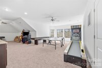 Perfectly positioned on one of the largest cul-de-sac lots in the highly sought-after Bridgehampton community, this stunning 3 story, 5 bedroom/5 bath all-brick home offers exceptional space, timeless design, and incredible flexibility for today’s lifestyle. Prime location just minutes to Ballantyne Bowl, Stonecrest, and Blakeney for shopping, dining, and entertainment. Zoned for top-rated schools: Elon Park, Community House, and Ardrey Kell. A dramatic two-story entry with a grand curved staircase welcomes you inside, where beautiful site-finished hardwood floors flow throughout the main living areas. The main level offers formal living and dining rooms, plus a spacious chef’s kitchen that opens seamlessly to the family room—ideal for everyday living and entertaining. A main-level guest bedroom with full bath provides the perfect space for visitors or a private home office. Outdoor living shines with a screened porch and paver patio featuring a custom fire pit overlooking the private backyard. Upstairs, the spacious primary suite features hardwood floors, dual closets with built-in shelving, and a large bath with dual vanities, garden tub, and separate shower. A flex room off the primary suite overlooks the backyard and is perfect for a sitting room, nursery, or office. The second level also includes three additional bedrooms, three full baths, a large bonus/media room, and conveniently located laundry. The third floor offers exceptional versatility with a media/recreation area, wet bar, full bath with sauna, workout room, and walk-in storage—ideal for a private teen suite, secondary living space, or game room. Bridgehampton offers resort-style amenities including a pool with splash zone, clubhouse, playground, basketball court, walking trails, tennis and pickleball courts, and a vibrant calendar of community events.