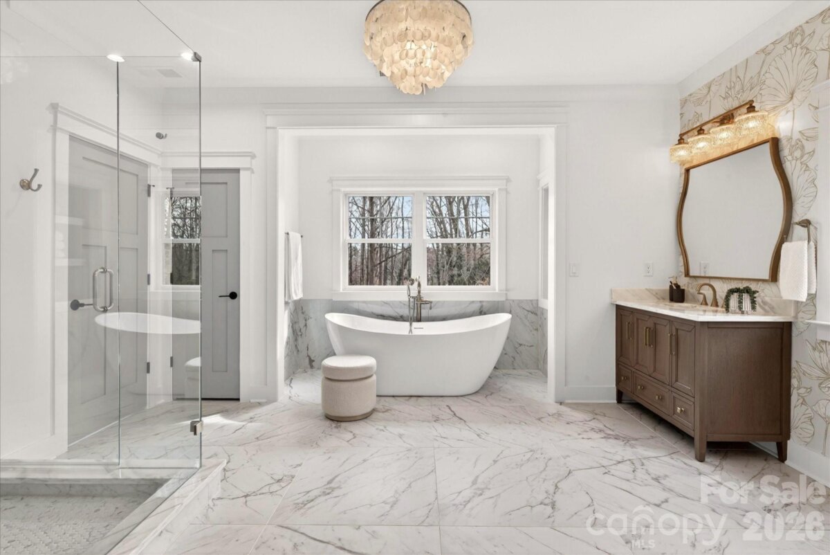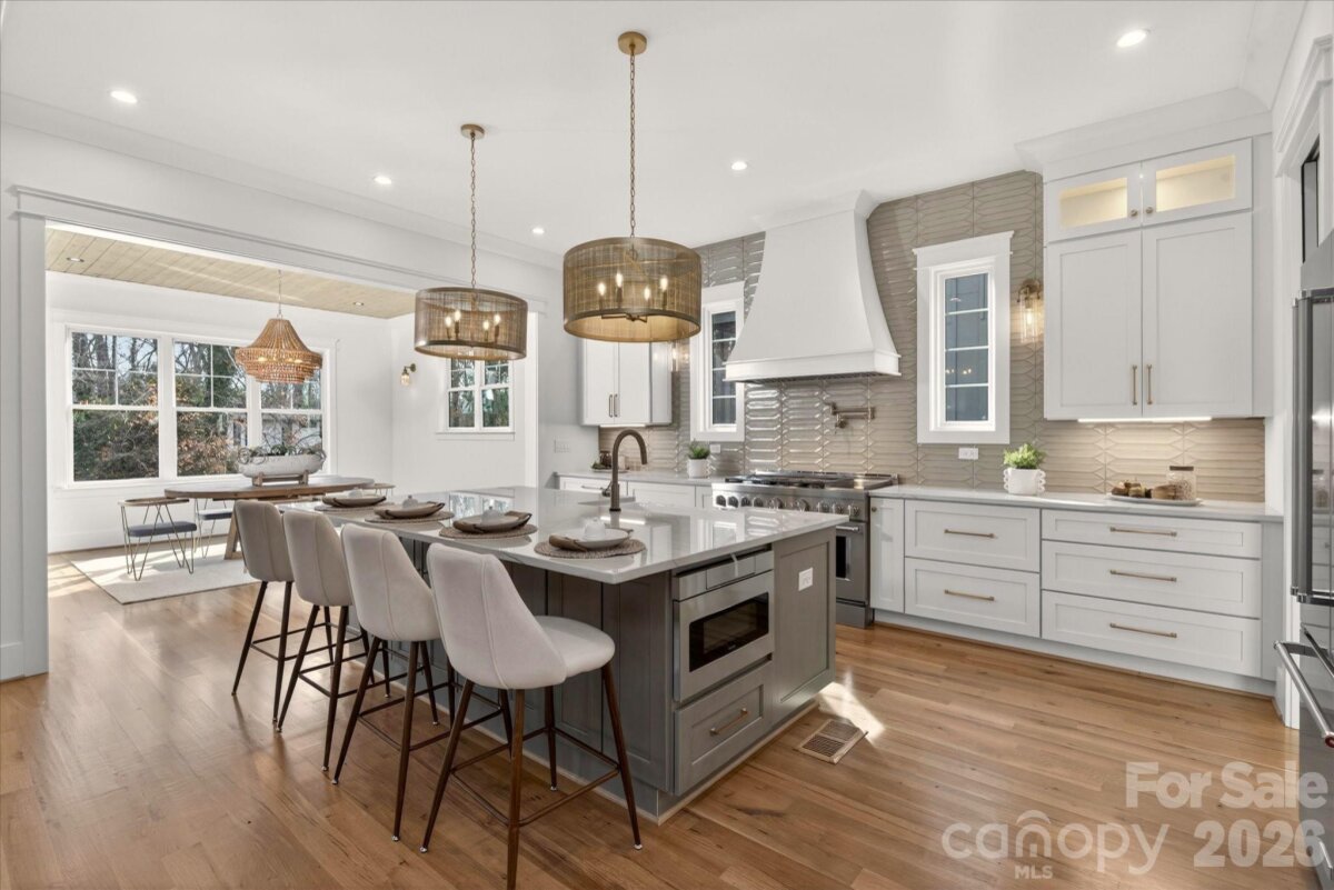 Discover Exceptional New Construction in Oakhurst! Nestled on a rare half-acre lot with mature trees, this stunning home blends modern luxury with timeless charm. Step inside to an open-concept floor plan designed for effortless living and entertaining. The chef’s kitchen is a showstopper, featuring an attached scullery, custom cabinetry, elegant Quartzite countertops, and a premium 48†KitchenAid range. Flow seamlessly into the spacious family room, complete with custom built-ins, a stylish bar area, and oversized sliding doors that open to a screened-in porch overlooking a huge fenced backyard - perfect for indoor/outdoor living. Retreat to the primary suite, boasting two walk-in closets and a spa-inspired bath for ultimate relaxation. Upstairs, enjoy a bonus room with a wet bar, ideal for game nights or movie marathons. Additional highlights include an outdoor kitchen, designer lighting and plumbing fixtures, white oak floors throughout, Anderson windows, energy-efficient foam insulation, Rinnai tankless water heater with circulating lines, Cat 6 wiring for modern connectivity, and a double-insulated garage door. This home offers luxury, functionality, and space, all in one of Charlotte’s most desirable neighborhoods. Don’t miss your chance to make it yours!