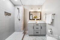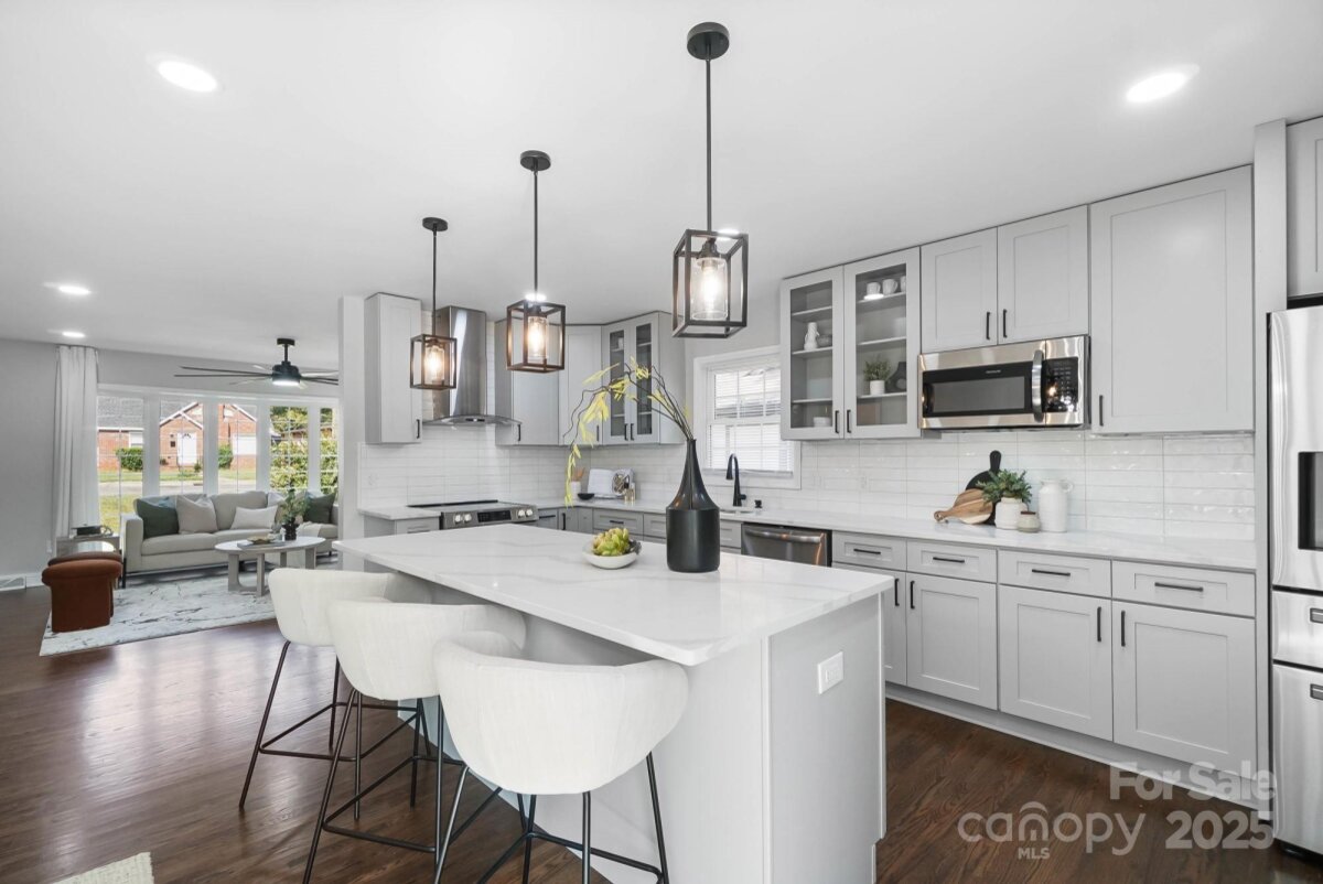 Homes like this don't come around often! Welcome to your newly renovated tri-level home in the heart of Charlotte's beloved Historic McCrorey Heights community. This home is the perfect blend of preserved charm and modern living. Imagine sipping coffee with a backdrop of Queen City skyline views or driving just minutes to Uptown for work, Charlotte Douglas Airport, Music Factory for concerts, Camp North End, Optimist Hall, NODA for dining and evenings out, or weekend events-all without ever needing the highway. Inside, the open floor plan creates a bright, welcoming atmosphere that's perfect for both everyday living and entertaining. The kitchen is a dream for anyone who loves to cook, and with three bedrooms -each with its own full bath-plus a guest powder room, everyone has space and privacy. This is more than just a house; it's a rare gem; A community feel within reach to Uptown Living at its finest where homes rarely come to market. Fully permitted renovations brought this home to the interior studs with new electrical, plumbing, ductwork, drywall, lighting, kitchen, bathrooms, roof, driveway, rear deck everything!