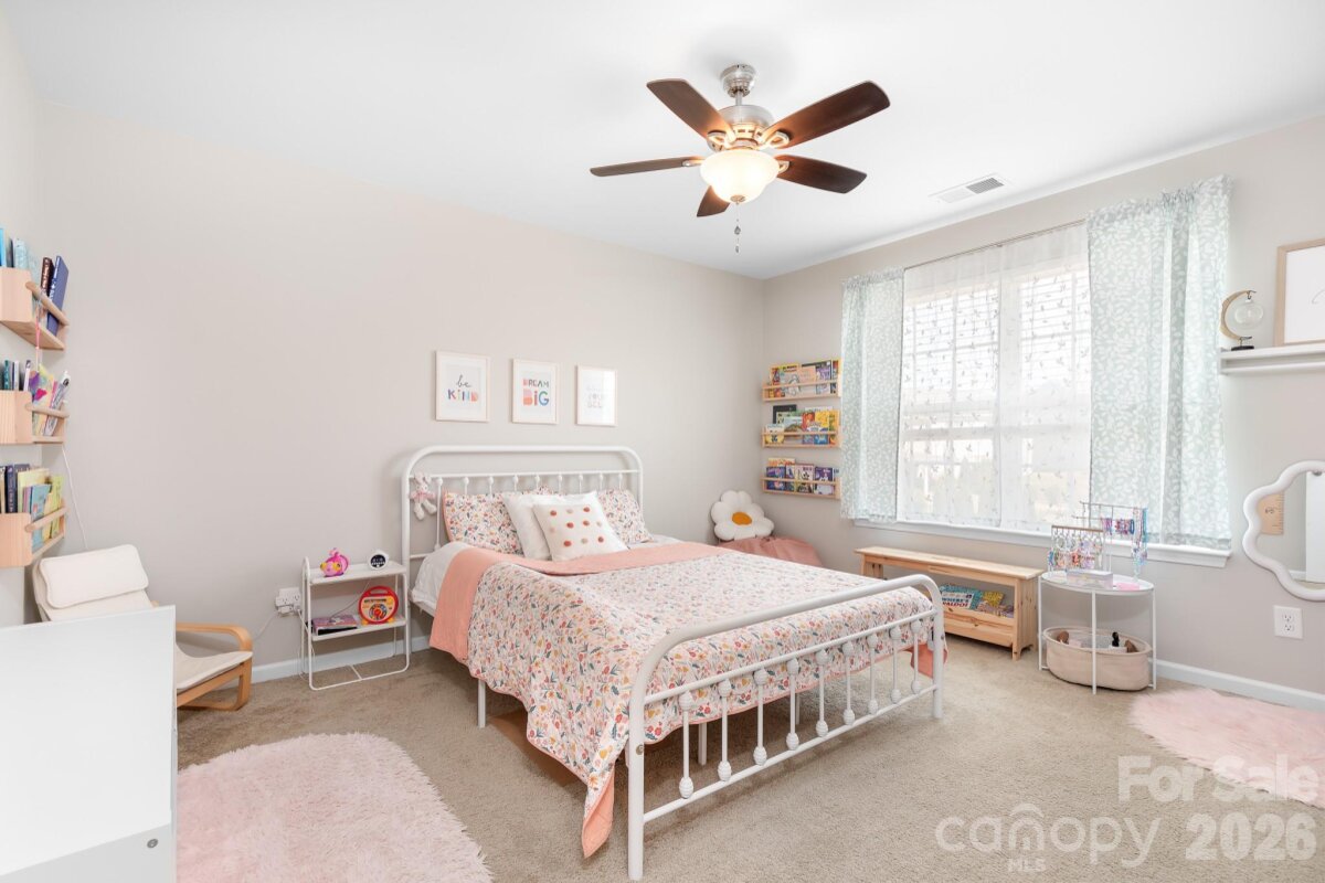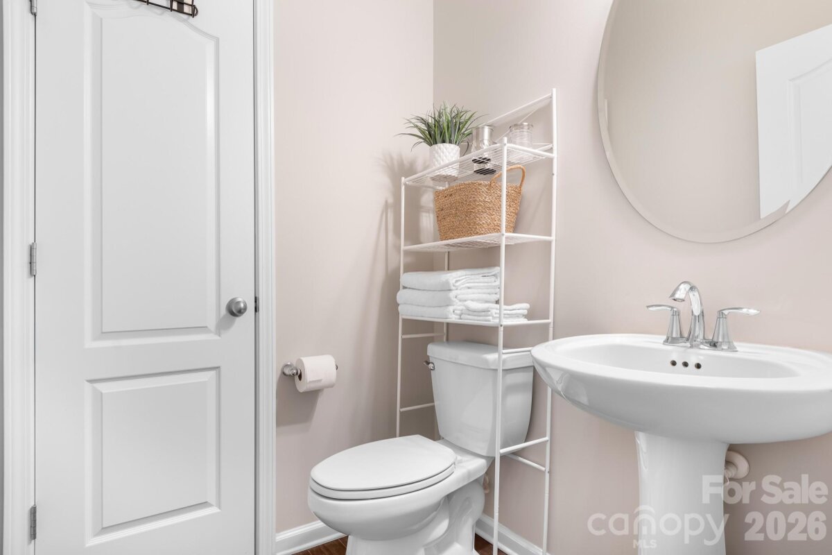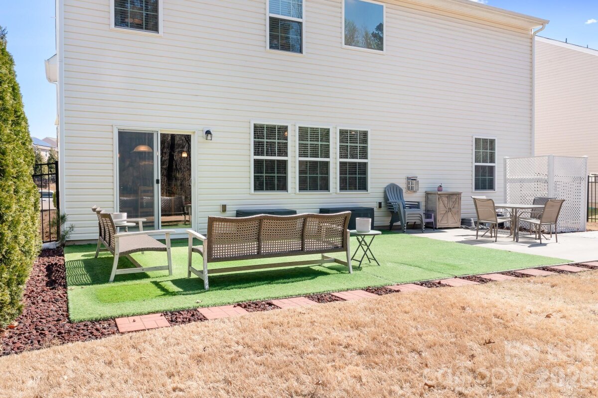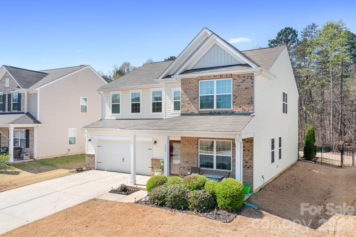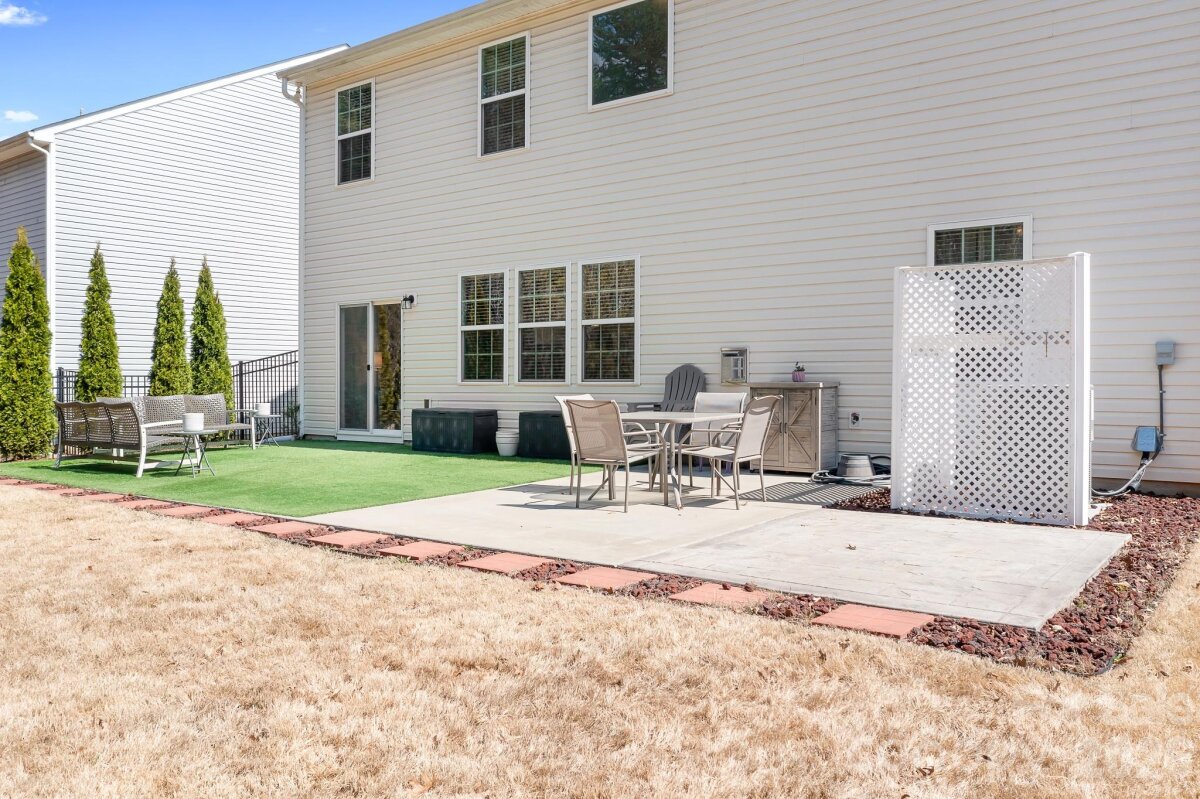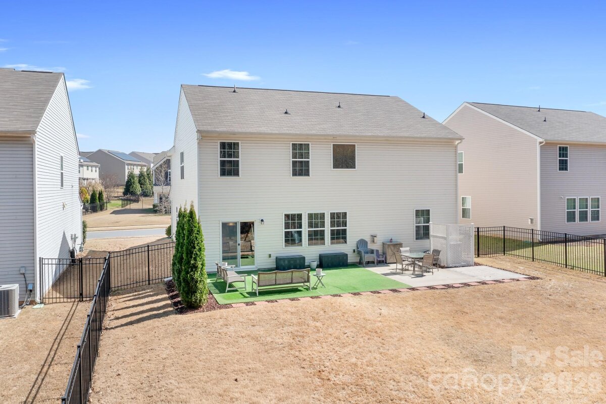 Welcome to this beautifully maintained home in the highly desirable Parkmont community, ideally located in Mooresville with top-rated schools and convenient access to shopping, dining, and parks. What truly sets this home apart is the exceptional backyard — a rare find in the neighborhood. The fully fenced yard offers a spacious, level area perfect for everyday living and entertaining, then gently slopes to a private, wooded backdrop with no neighboring homes in view. A rear gate provides direct access to the trail leading to Cornelius Road Park, creating a seamless connection to outdoor recreation. The extended, oversized patio makes this space even more inviting for relaxing or hosting gatherings. Inside, you’ll find a thoughtfully designed layout with both functionality and style. The main level features a spacious entryway, a dedicated office, and a dining room accented with wainscoting. The living room offers a cozy fireplace and flows into the kitchen, which includes granite countertops, a breakfast bar, pantry, and newer appliances — with the dishwasher approximately 3 years old and the electric range approximately 4 years old. A bedroom and half bath on the main level provide additional flexibility for guests or a home office. Upstairs, the home continues to impress with four generously sized bedrooms in a desirable split-bedroom layout, plus a versatile loft space. Every bedroom includes a walk-in closet and ceiling fan for added comfort. The laundry room is conveniently located on the upper level and offers ample space along with storage cabinets. With its standout lot, thoughtful upgrades, and flexible living spaces, this home offers a combination of privacy, comfort, and location that is hard to find — a truly special opportunity you won’t want to miss.