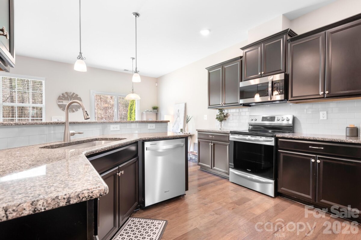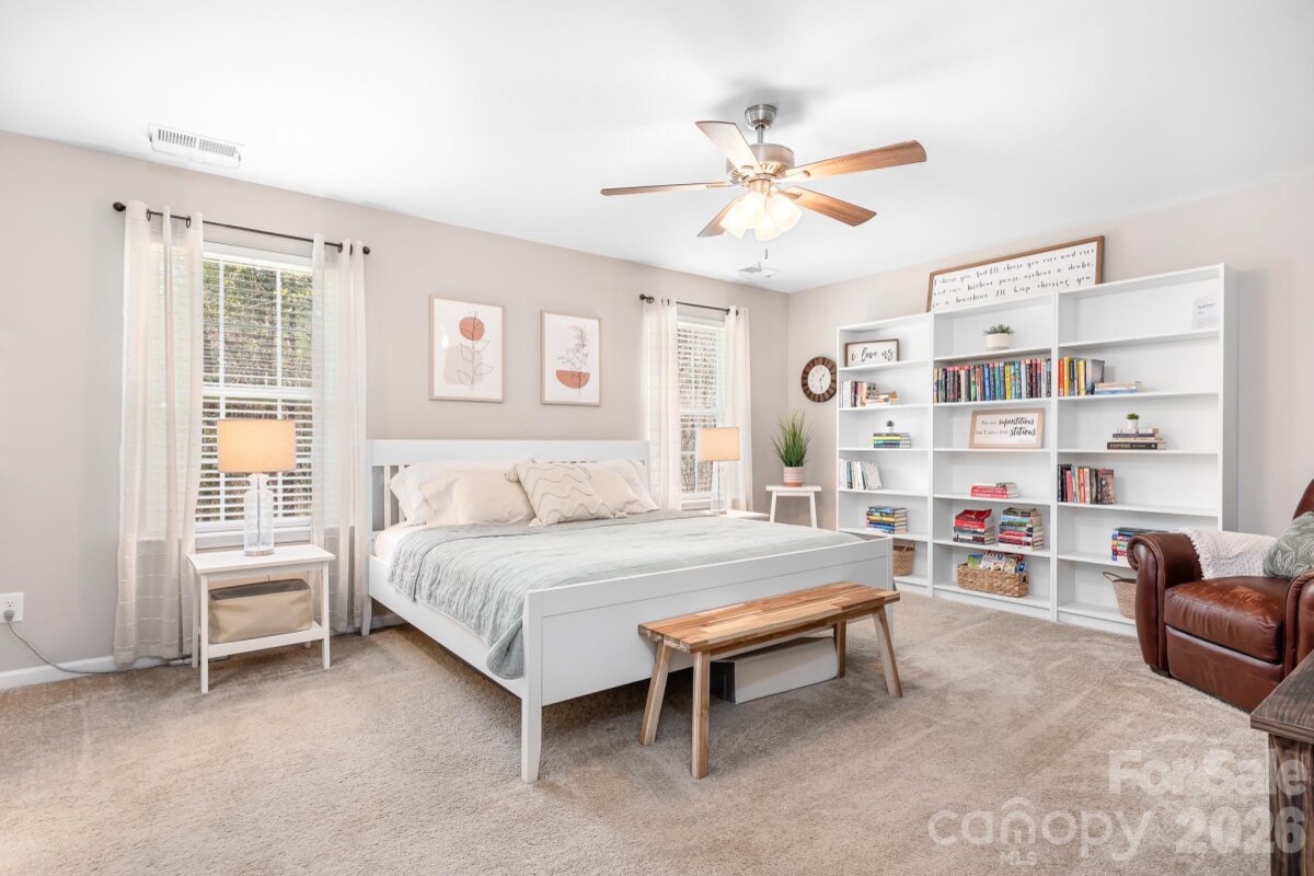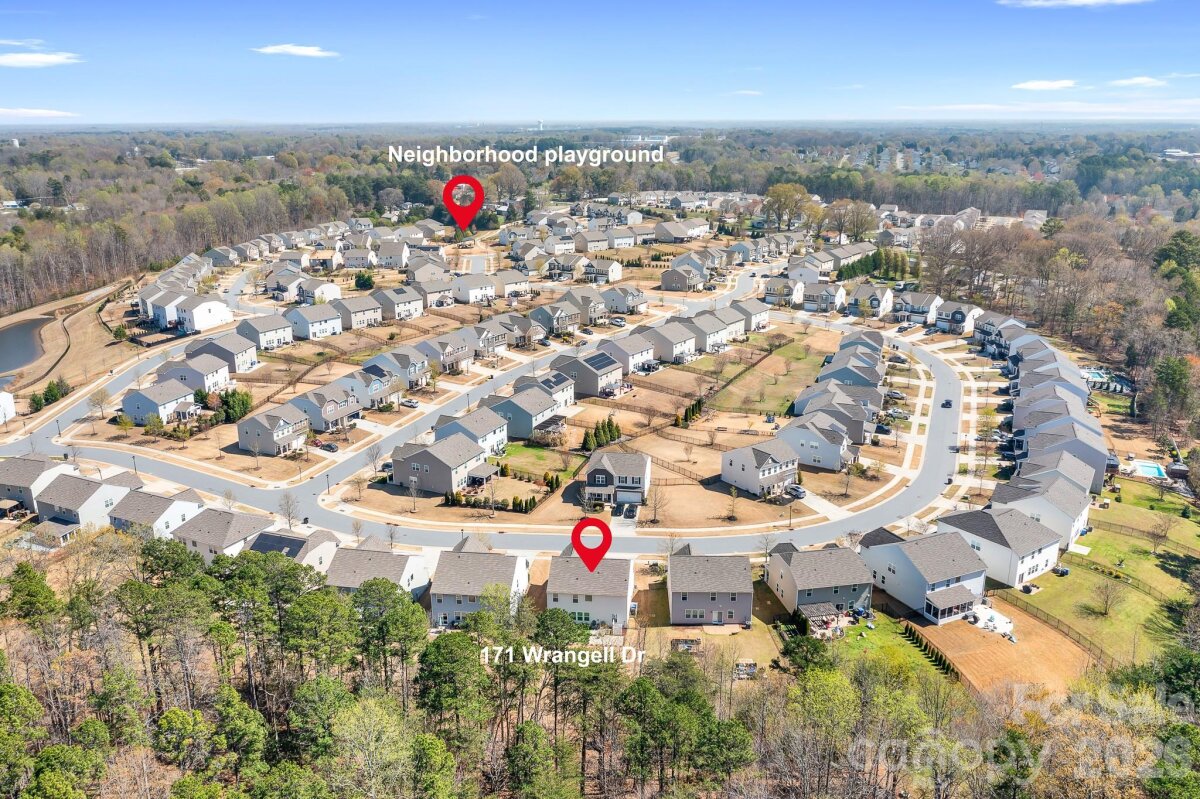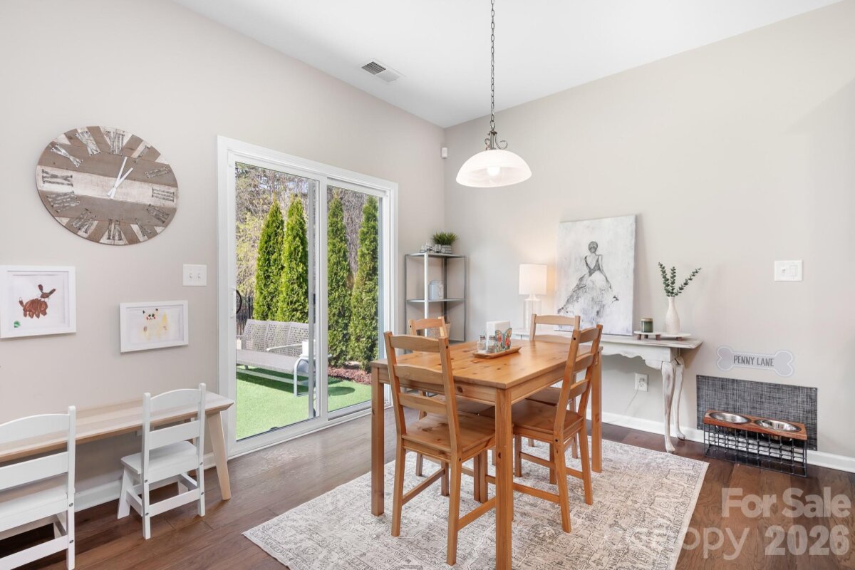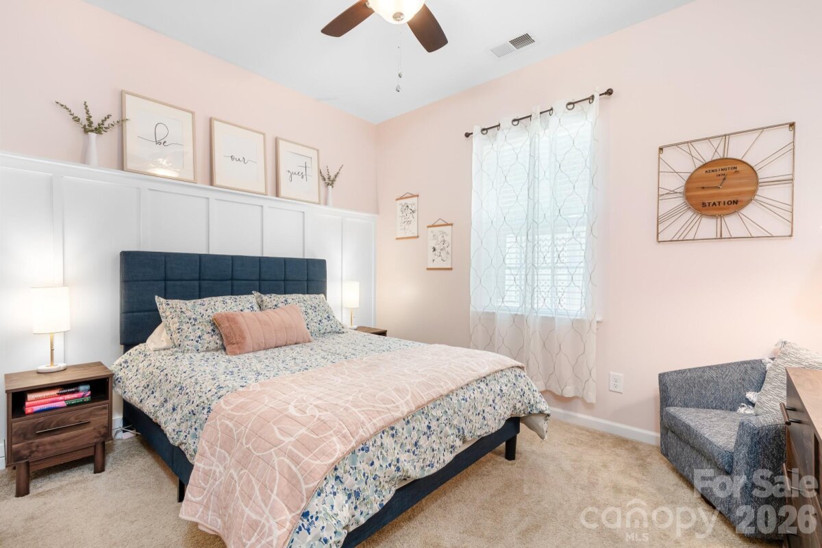 Welcome to this beautifully maintained home in the highly desirable Parkmont community, ideally located in Mooresville with top-rated schools and convenient access to shopping, dining, and parks. What truly sets this home apart is the exceptional backyard — a rare find in the neighborhood. The fully fenced yard offers a spacious, level area perfect for everyday living and entertaining, then gently slopes to a private, wooded backdrop with no neighboring homes in view. A rear gate provides direct access to the trail leading to Cornelius Road Park, creating a seamless connection to outdoor recreation. The extended, oversized patio makes this space even more inviting for relaxing or hosting gatherings. Inside, you’ll find a thoughtfully designed layout with both functionality and style. The main level features a spacious entryway, a dedicated office, and a dining room accented with wainscoting. The living room offers a cozy fireplace and flows into the kitchen, which includes granite countertops, a breakfast bar, pantry, and newer appliances — with the dishwasher approximately 3 years old and the electric range approximately 4 years old. A bedroom and half bath on the main level provide additional flexibility for guests or a home office. Upstairs, the home continues to impress with four generously sized bedrooms in a desirable split-bedroom layout, plus a versatile loft space. Every bedroom includes a walk-in closet and ceiling fan for added comfort. The laundry room is conveniently located on the upper level and offers ample space along with storage cabinets. With its standout lot, thoughtful upgrades, and flexible living spaces, this home offers a combination of privacy, comfort, and location that is hard to find — a truly special opportunity you won’t want to miss.