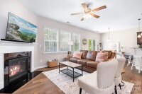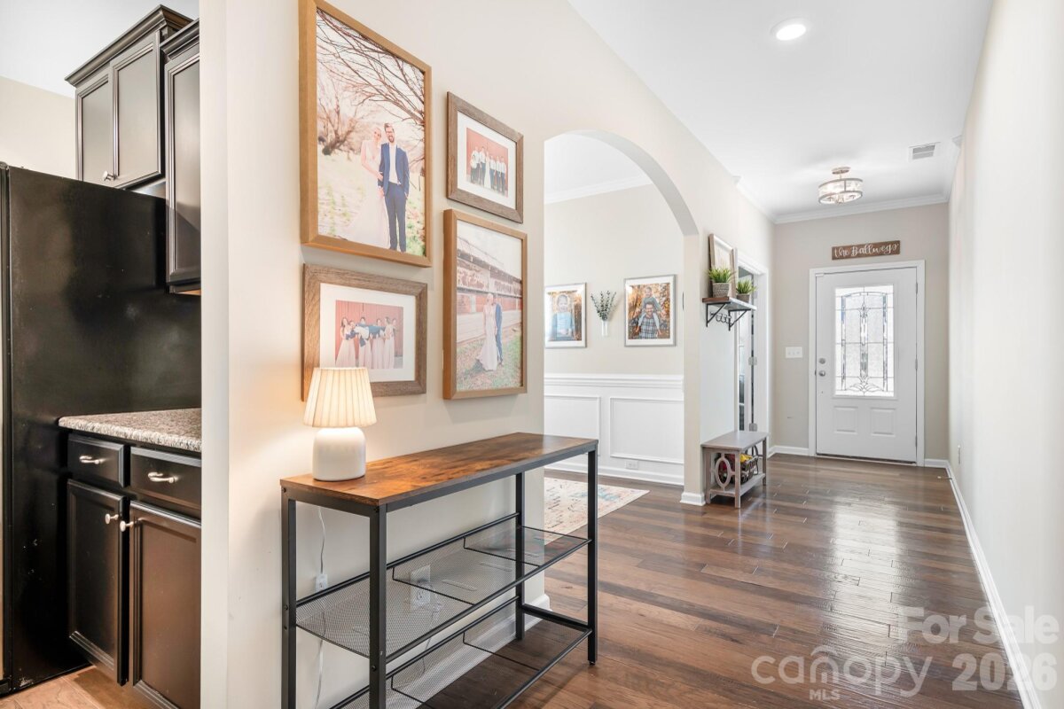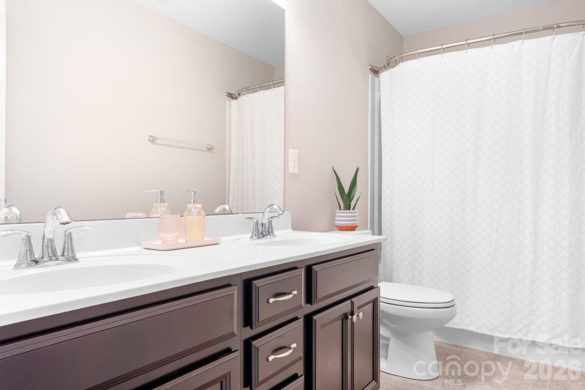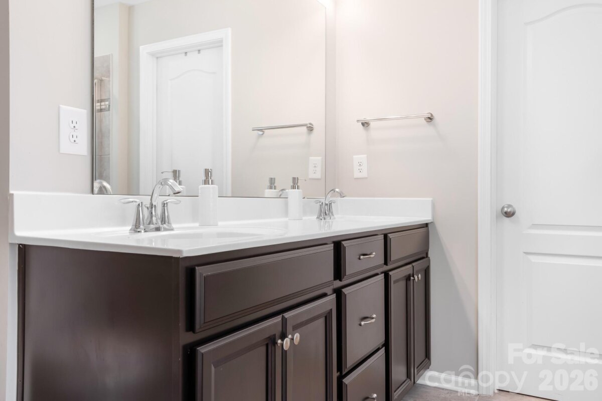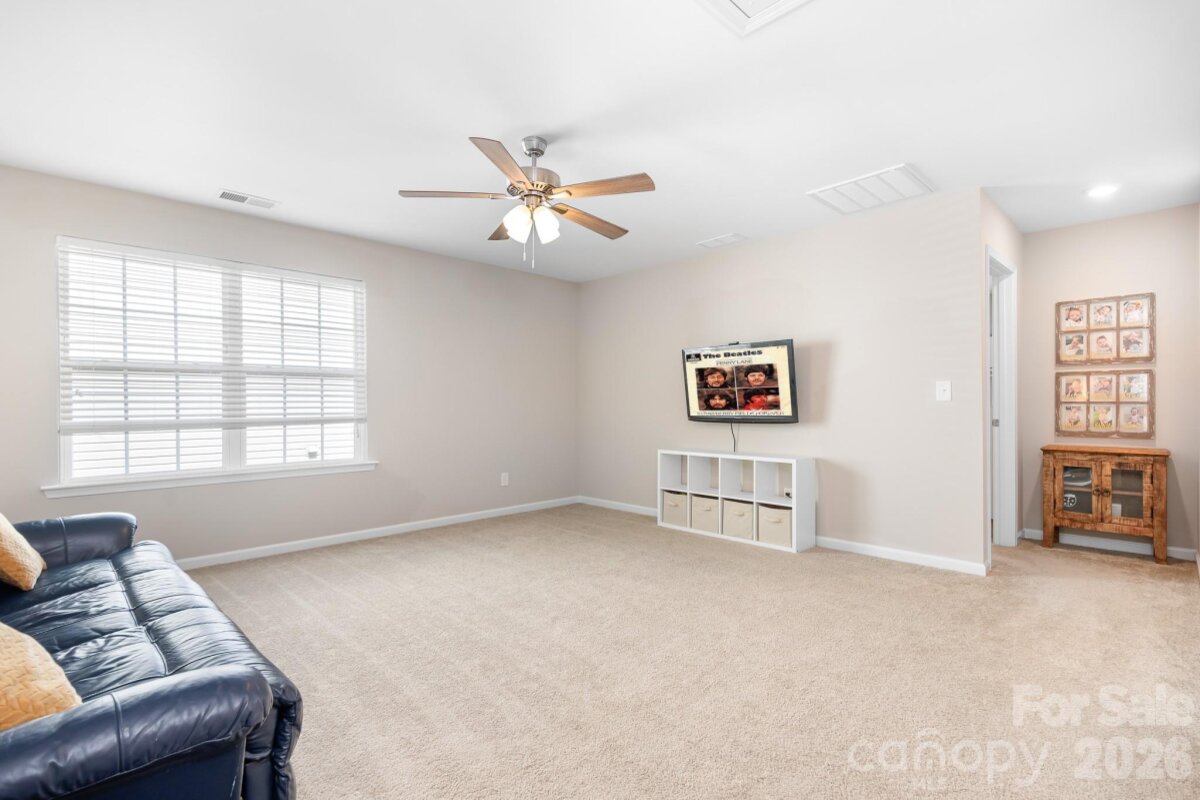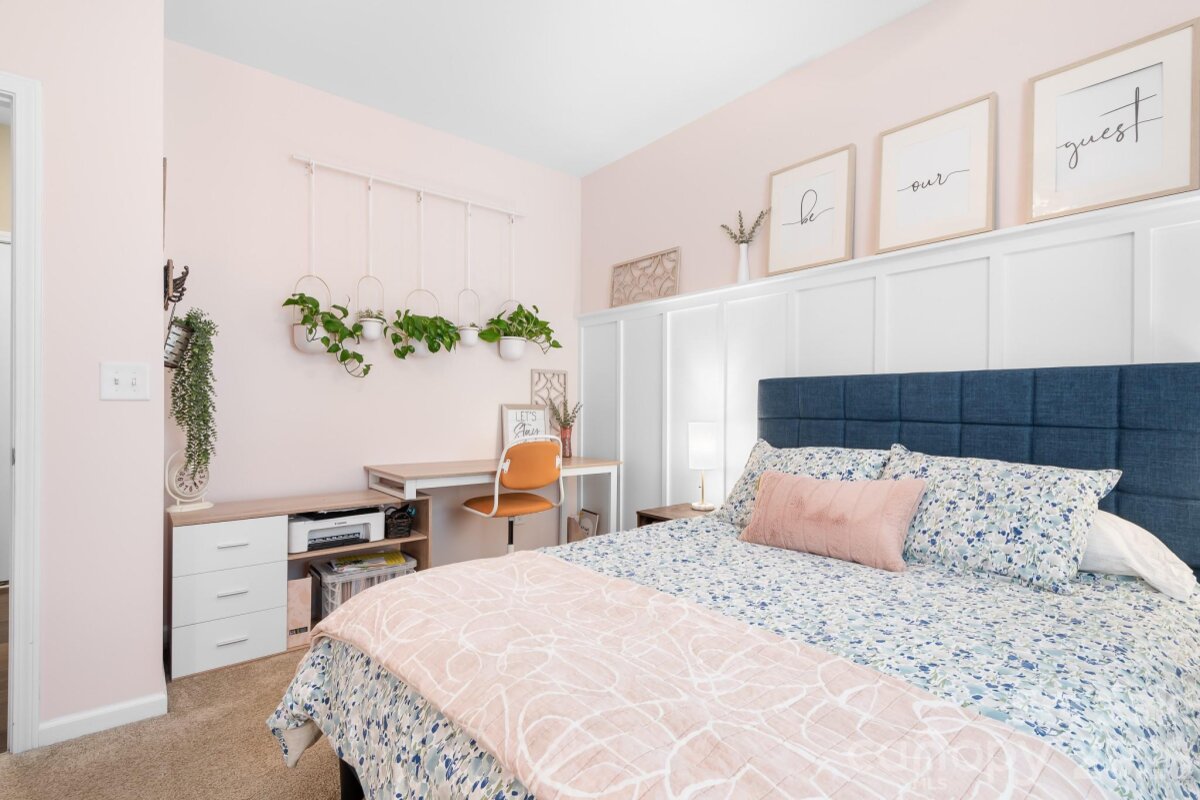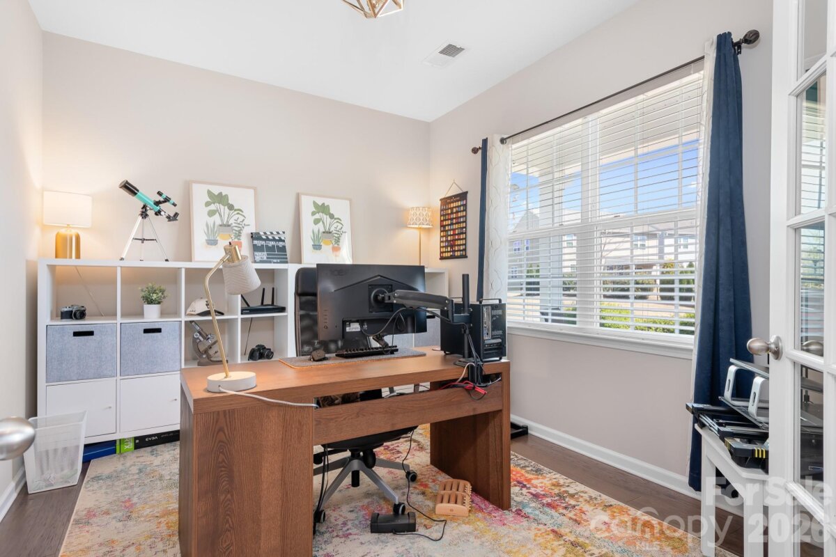 Welcome to this beautifully maintained home in the highly desirable Parkmont community, ideally located in Mooresville with top-rated schools and convenient access to shopping, dining, and parks. What truly sets this home apart is the exceptional backyard — a rare find in the neighborhood. The fully fenced yard offers a spacious, level area perfect for everyday living and entertaining, then gently slopes to a private, wooded backdrop with no neighboring homes in view. A rear gate provides direct access to the trail leading to Cornelius Road Park, creating a seamless connection to outdoor recreation. The extended, oversized patio makes this space even more inviting for relaxing or hosting gatherings. Inside, you’ll find a thoughtfully designed layout with both functionality and style. The main level features a spacious entryway, a dedicated office, and a dining room accented with wainscoting. The living room offers a cozy fireplace and flows into the kitchen, which includes granite countertops, a breakfast bar, pantry, and newer appliances — with the dishwasher approximately 3 years old and the electric range approximately 4 years old. A bedroom and half bath on the main level provide additional flexibility for guests or a home office. Upstairs, the home continues to impress with four generously sized bedrooms in a desirable split-bedroom layout, plus a versatile loft space. Every bedroom includes a walk-in closet and ceiling fan for added comfort. The laundry room is conveniently located on the upper level and offers ample space along with storage cabinets. With its standout lot, thoughtful upgrades, and flexible living spaces, this home offers a combination of privacy, comfort, and location that is hard to find — a truly special opportunity you won’t want to miss.