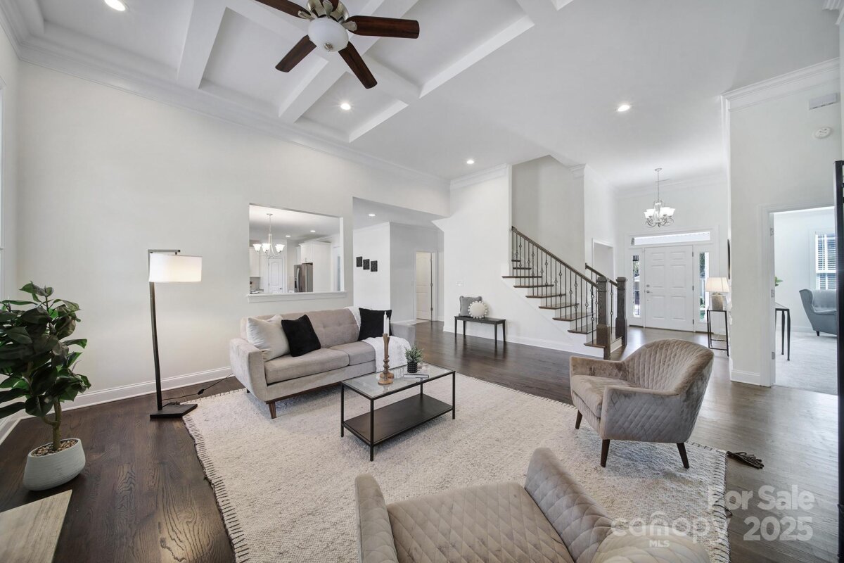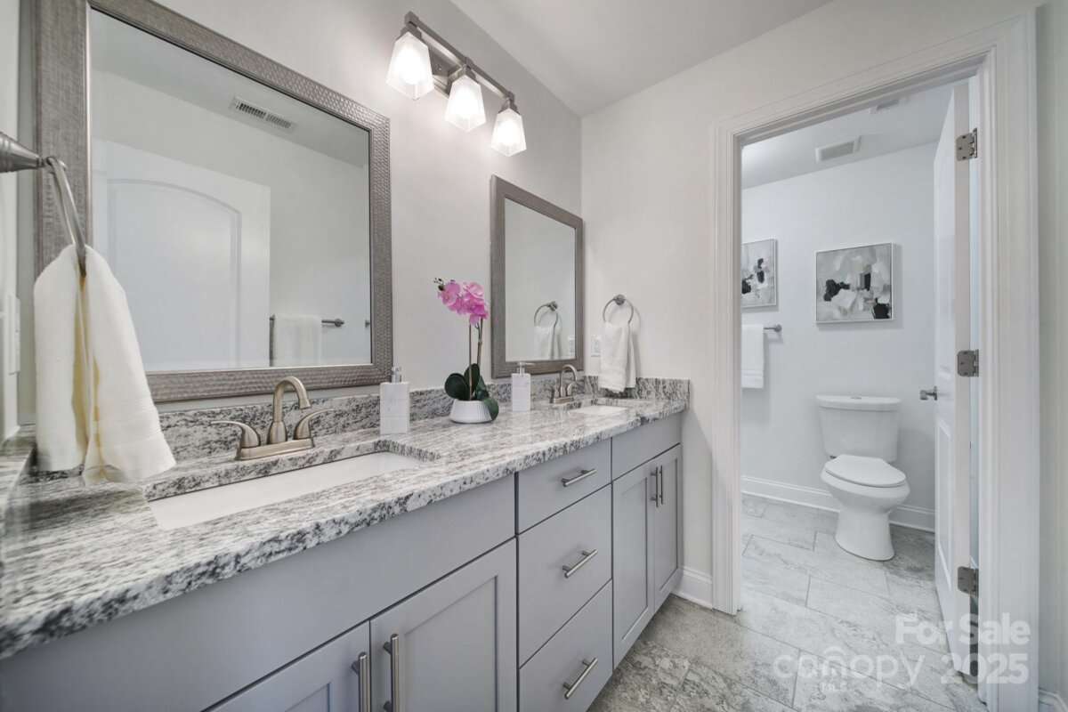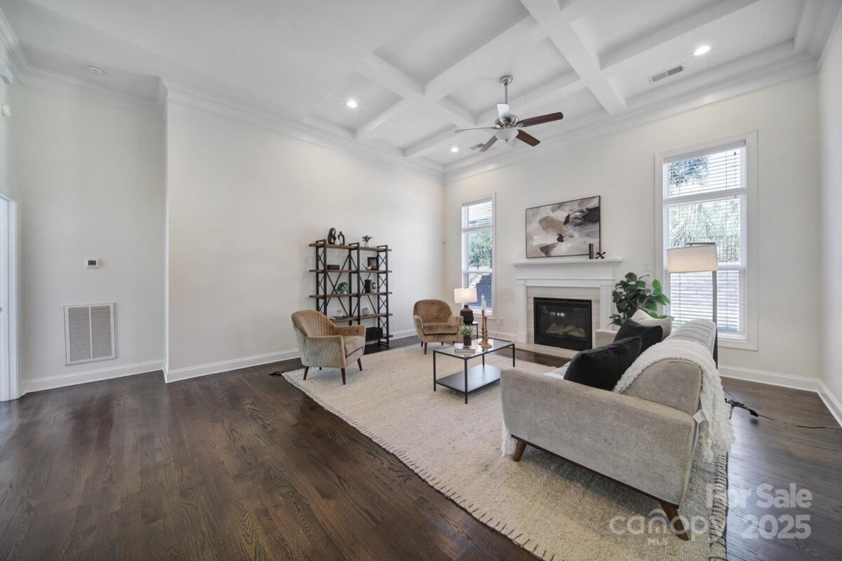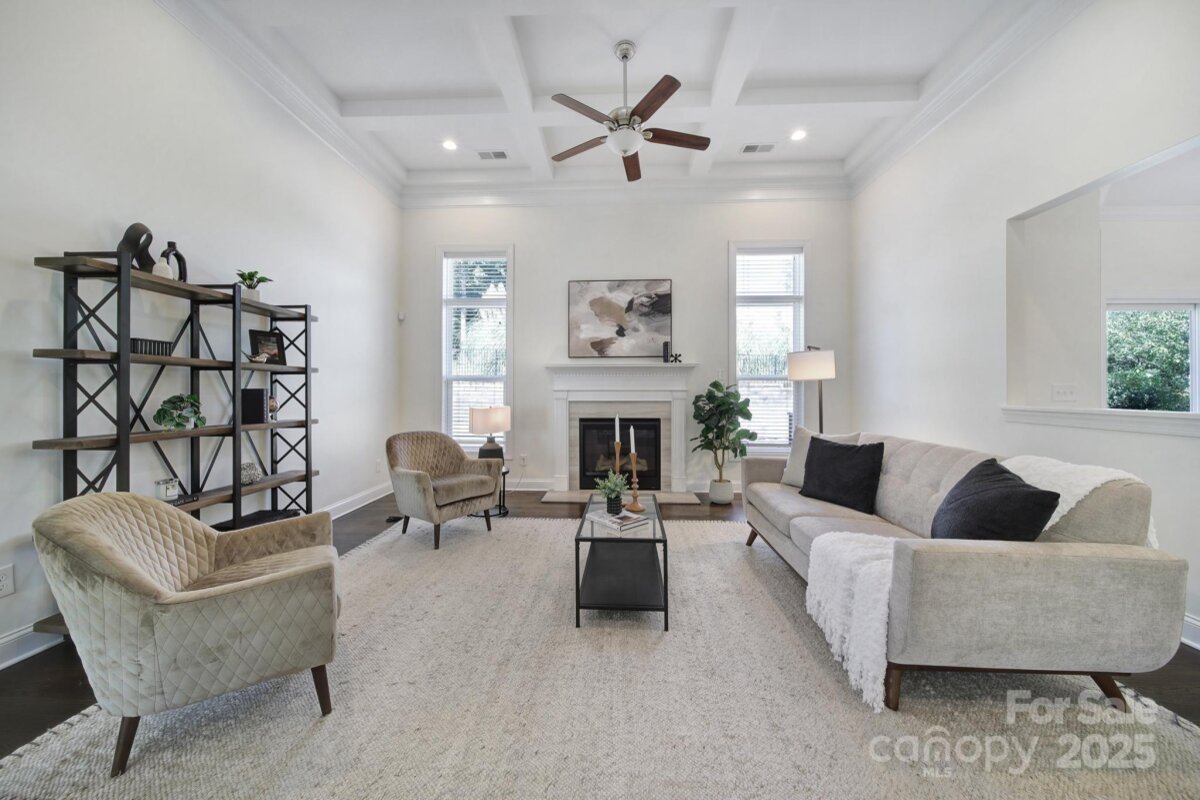 This immaculate 4 bedroom home in the popular Seven Oaks subdivision is yours for the taking! Custom-built by Alosi Builders, this home brings luxury and functional craftsmanship together in all the right ways. Step inside to find soaring 12’ ceilings in the foyer and living room, detailed wainscoting, and ¾†red oak hardwoods that carry throughout the main spaces. The entire home is freshly painted with neutral Alabaster White leaving a blank canvas for the new owner. The main floor consists of a living room centered around a gas fireplace, half bathroom, formal dining room, kitchen with breakfast nook, primary suite, and large laundry room with sink. The kitchen consists of granite countertops, stainless steel appliances, soft-close cabinetry, and pantry. Peek out of the back door to find a deck overlooking the backyard with a private, tree-lined view atop the retaining wall. Upstairs, three spacious bedrooms provide plenty of room to spread out along with plenty of closet space and another full bathroom. Take advantage of the top-notch upgrades that have been poured into the backyard with a sizable deck, custom paver fire pit with seating, a stone retaining wall with mature pampas grass for additional privacy and a partial fence that could easily be added onto to completely enclose the backyard. Close to restaurants, retail, and schools and easy access to I-77 and downtown Rock Hill.