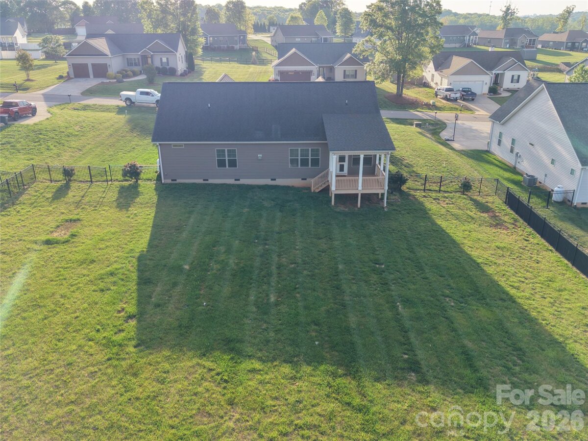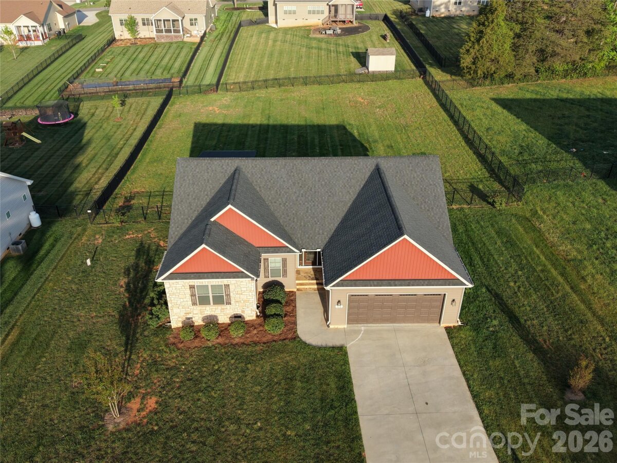 Welcome to 172 Staffordshire Court in the desirable Castlegate community of Statesville—conveniently located just minutes from Interstate 40, offering easy access to everything the area has to offer. Situated on a spacious half-acre lot, this well-maintained 3-bedroom, 2-bath home built in 2019 offers approximately 1,700 square feet of thoughtfully designed living space. Inside, you’ll find a bright, open floor plan with wide-plank luxury vinyl plank flooring throughout—no carpet—creating a clean, modern feel that’s both stylish and low maintenance. The kitchen, dining, and living areas flow seamlessly together, making the home ideal for both everyday living and entertaining. Step outside to a covered deck overlooking a large, flat backyard that is fully fenced—perfect for pets, play, or simply enjoying your own private outdoor space. Castlegate is known for its welcoming atmosphere, great neighbors, and community amenities, including a neighborhood pool that adds to the lifestyle this home offers. If you’re looking for a newer home with modern finishes, a usable yard, and a convenient location, this one checks all the boxes.