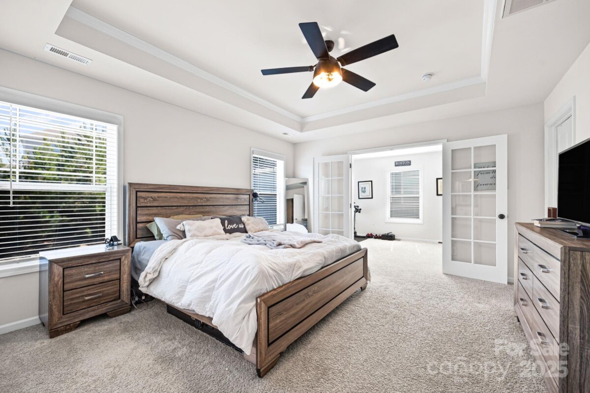 You will fall in love with this absolutely beautiful 5-bedroom home on a quiet cul de sac in Cypress Point! The main floor features a private office with custom sliding doors; a gourmet kitchen with double ovens, a gas cooktop, a butler's pantry, and a walk-in storage pantry; a spacious living room with a gas fireplace; a bedroom with adjacent full bath; and a mud room with built in drop zone off the garage entry. Upstairs you will find an oversized owners suite with a large walk-in closet, separate vanities, a tile shower, a garden tub and French doors leading to a sitting room. There are also two spacious secondary bedrooms, a hall bath with double sinks and a separate tub/shower room, a 5th bedroom/bonus room with custom barn doors, and a large laundry room. Recent upgrades include custom lighting throughout, an accent wall in the living room, custom doors in the office, primary suite and bonus room, and shiplap over the fireplace.. The fenced yard is fully irrigated with an extended patio, a pergola, a retaining wall, and mature landscaping. The community features resort style amenities including a pool, clubhouse, fitness center, picnic area, sports court, walking trails and more, and is zoned for the new Lake Wylie High School opening in 2026. Low taxes, close proximity to all the shopping & restaurants in Lake Wyie, and an easy commute to Charlotte or the airport. Don't let this beautiful home get away!