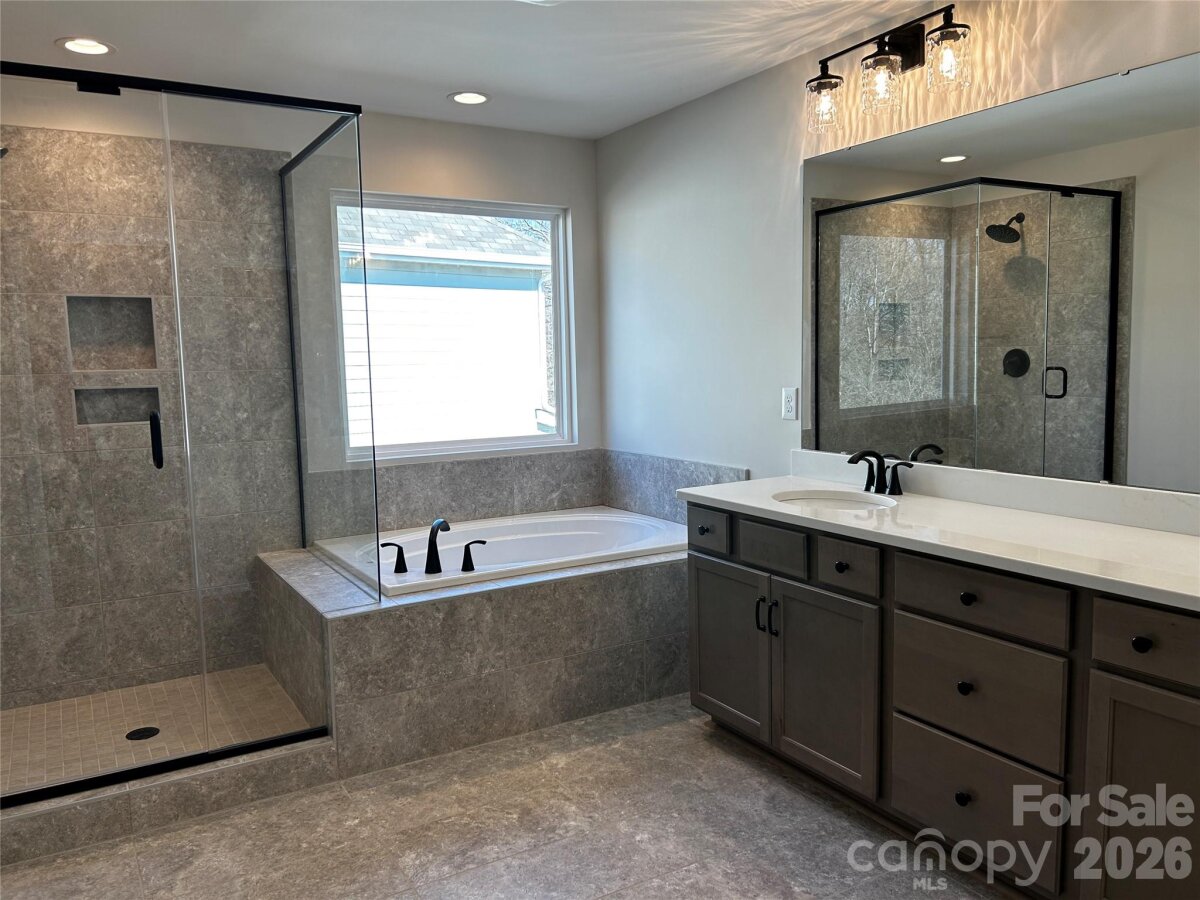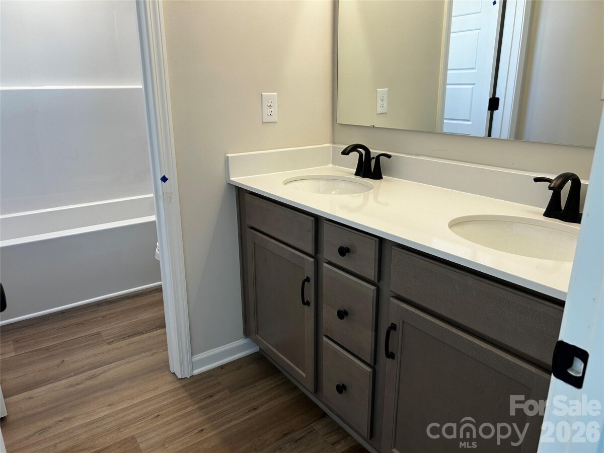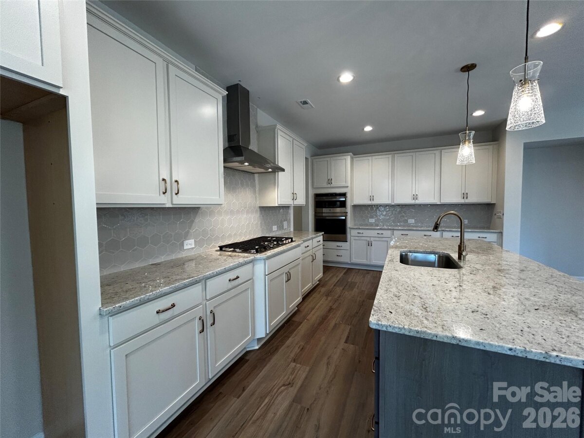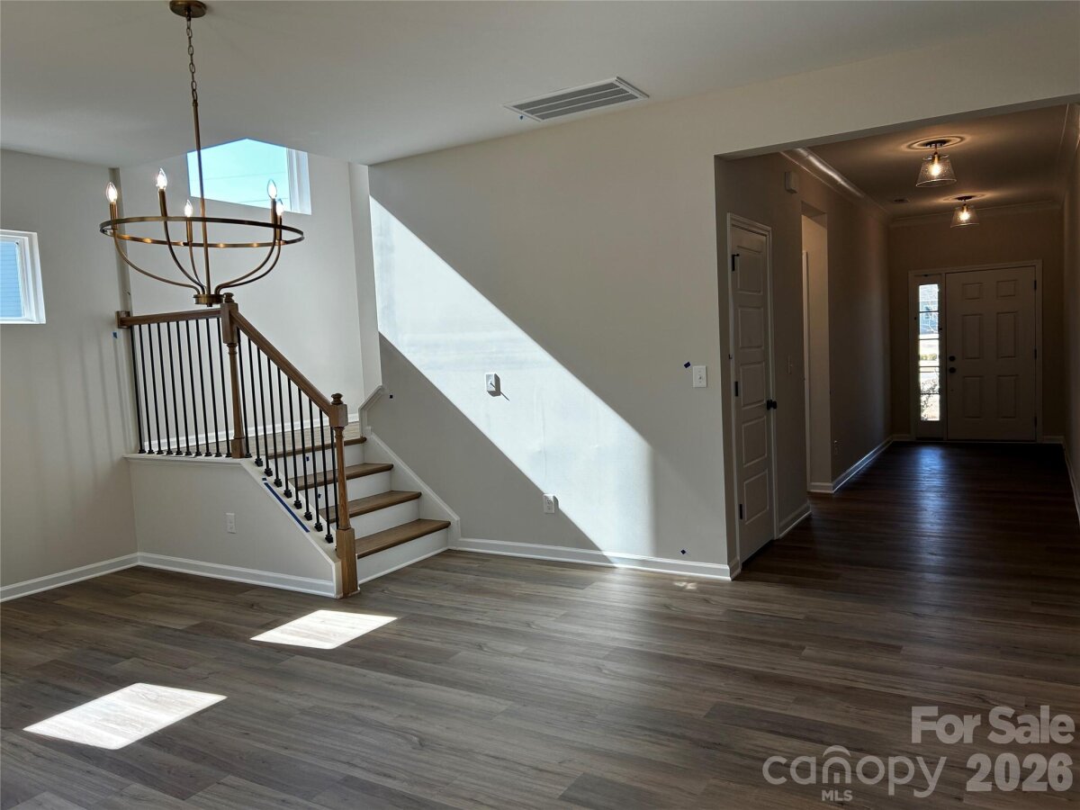 Spacious and Open Kingston plan on a terrific home site with a large grassy rear yard backing to trees and common open space on one side of the home. Ideal guest bed down w/ full bath and walk-in tiled shower. Primary bed up plus an open loft and 3 additional beds. The home's family room includes a cozy gas log fireplace with media niches on either side of fireplace. Front porch plus a rear covered deck overlooking the rear yard. Large kitchen with buttercream painted shaker style cabinets at perimeter and Silvergrass stained island. Just off the kitchen is the spacious dining room which is wrapped in windows and light. Family room also right off kitchen for the perfect entertaining spaces. Granite counters, tile back-splash, and gourmet split cooking stainless appliances and walk-in pantry. Plenty of counter top space with the large center island. Mud room w/ drop zone to keep it all organized. Premier suite up w/ decorative tray ceiling and large walk-in closet. Premier bath features a separate garden tub and walk-in tiled shower. Lots of warm toned luxury vinyl plank flooring throughout and accented with bronzed gold and matte black hardware, lighting and plumbing. Future amenities include a cabana, pool, playground and natural walking trails.