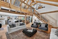 Beautiful, updated move-in ready home sitting on 7 acres that is full of character and charm. It offers privacy, space, and many natural elements that make the home inviting and peaceful. You have to see it to believe it! You will feel like you are on vacation as you come down the long winding driveway, with fenced pastures. You will pass over a stone bridge, that crosses a creek, as you pull into your private estate. The house is just past a large barn that can be used for horses, as an additional recreation space, or even made into a barndominium with the correct footings and foundation in place to let your imagination soar. Around the property are many fruit trees, bushes and vines from blueberries to muscadines. Once you enter the front door of the home you are welcomed by a gorgeous floor-to-ceiling stone fireplace and vaulted ceiling that opens into the kitchen and dining room. The open concept floorplan is great for hosting wonderful dinner parties. The house has 5 large bedrooms, 2 with vaulted ceilings and en-suites that could each be used as a Master. One of the primary bedrooms has its own balcony. Their is also a large loft and additional bonus room above the garage. This home has 4 full baths, 2 on the first level and 2 on the second level. The expansive three car garage offers ample storage to suite all your needs. The back patio has a stone grill island, shed, and playset that will all convey. This home is unique and special, one that doesn't come available often.