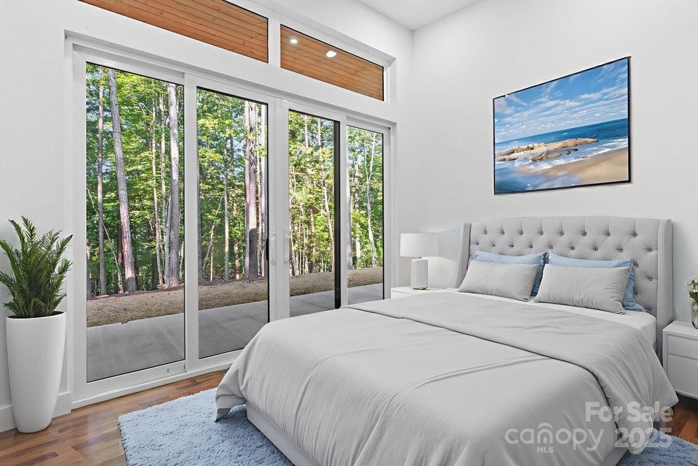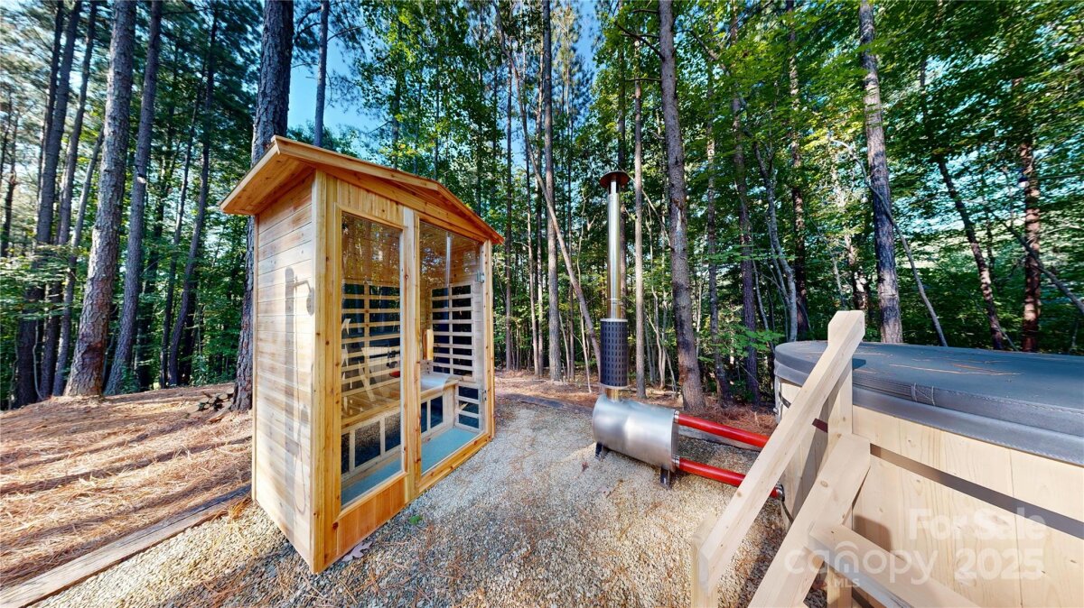 Beyond the Walls: Your Bespoke, Fully-Appointed Modern Sanctuary in Gated Golden Creek Escape to an unparalleled retreat! Nestled on 2.14 private, wooded acres in the exclusive, gated Golden Creek community, this brand-new 3-bedroom, 2.5-bath contemporary home is designed for the ultimate indoor/outdoor lifestyle. Floor-to-ceiling windows and doors flood the home with natural light and create a seamless connection with the serene North Carolina woods. Unrivaled Wellness & Entertainment: This property is a four-season haven. Enjoy over 1,000 square feet of covered outdoor living space—perfect for year-round entertaining—complete with one of two dramatic stone fireplaces and a fully equipped Outdoor Kitchen. The private grounds feature a secluded Sauna, Hot Tub, and Outdoor Shower area, complemented by a rustic Fire Pit for starry nights. Meticulous Design & Turn-Key Luxury: The meticulous attention to detail continues inside. The primary bathroom is truly "to die for," featuring a soaking tub, frameless glass shower, and elegant finishes. The kitchen boasts cutting-edge design, including a unique faucet that illuminates to indicate water temperature. Additional luxury features include walk-in closets with finished cabinetry, sophisticated recessed lighting with nightlight accents, and a dedicated Pet Spa in the laundry room, tankless water heater, and much more. This home is ready for immediate occupancy: All appliances shown are included (BBQ, Beverage Bar, Washer/Dryer, Sauna, and Hot Tub). Experience the pinnacle of modern mountain living. Schedule your private viewing to fully appreciate this unique sanctuary!