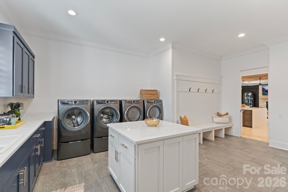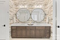 A rare private estate on 1.8 acres in The Reserve at River Run, designed for those who value space, quiet, and refined indoor-outdoor living. This exceptional 6500 sf custom home has privacy on all sides, which is rarely found in this community. Masterfully designed by Kathryn Lilly Interiors, this home seamlessly blends refined sophistication with everyday livability. Surrounded by serene park and wooded views, the two-level residence is located steps away from the beautiful greenway trail. The main level is anchored by a chef’s kitchen featuring a dramatic quartz waterfall island, 72†integrated refrigerator/freezer, professional-grade appliances, and an expansive walk-in pantry complete with an additional 36†refrigerator-ideal for effortless entertaining. The primary suite is a sanctuary on the main level, offering a spa-inspired bath and a fully customized dressing room. A generous guest suite with ensuite bath on main level provides comfort and convenience for visitors. Upstairs, a spacious game room with wet bar creates the perfect gathering space, alongside three additional bedrooms- each with its own ensuite bath. The layout offers exceptional separation for guests, family members, or work-from-home living. A thoughtfully designed private wing offers ultimate flexibility for an au pair, in-laws, or extended stay guests, complete with a second laundry room, kitchenette, and expansive bonus space. Seamless indoor-outdoor living is showcased through two screened porches featuring a fireplace and built-in gas grill- perfect for year-round enjoyment. The backyard is a true retreat, highlighted by a custom pool and spa surrounded by luxurious travertine hardscape. The pool and terrace create a resort-like outdoor setting below the main living level. Additional features include a standing-height encapsulated crawlspace offering exceptional storage, and a 3+ car garage outfitted with custom storage systems, epoxy flooring, and EV charging stations. Experience the luxury of space, privacy, and thoughtful design- all while enjoying the premier lifestyle of River Run and the charm of Davidson.