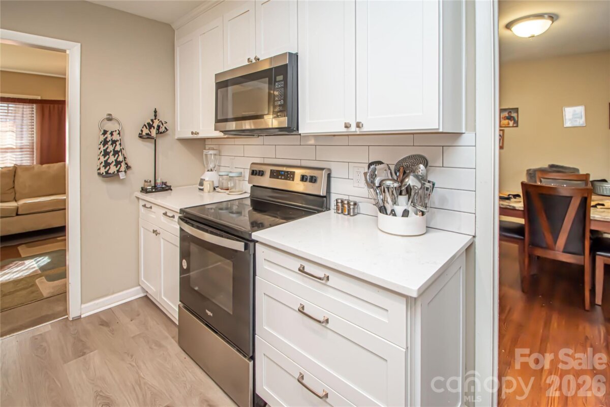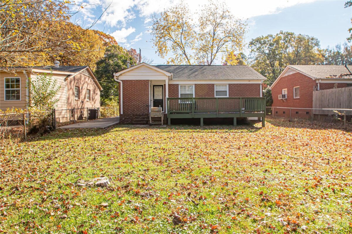 Don’t miss this beautifully maintained 2-bedroom, 1-bath brick home in the highly desirable Oakhurst community—just minutes from Uptown Charlotte! The kitchen and bathroom were completely remodeled two years ago, featuring updated appliances, modern finishes, and timeless style. Enjoy hardwood floors in the bedrooms and under the living room carpet, luxury vinyl plank flooring in the kitchen, and ceramic tile in the bathroom. The spacious layout extends outdoors with a large wood deck—a standout feature that is 16’ x 24’ which is perfect for entertaining—and a partially fenced yard offering privacy and plenty of space to enjoy the outdoors. The laundry room is enclosed on the porch, providing ample storage and versatility. Situated on a .25-acre lot, this property offers room to expand or simply relax in your own private setting. Conveniently located near the bus line, shopping, dining, and entertainment—with no HOA—this home combines comfort, convenience, and value in one incredible package!