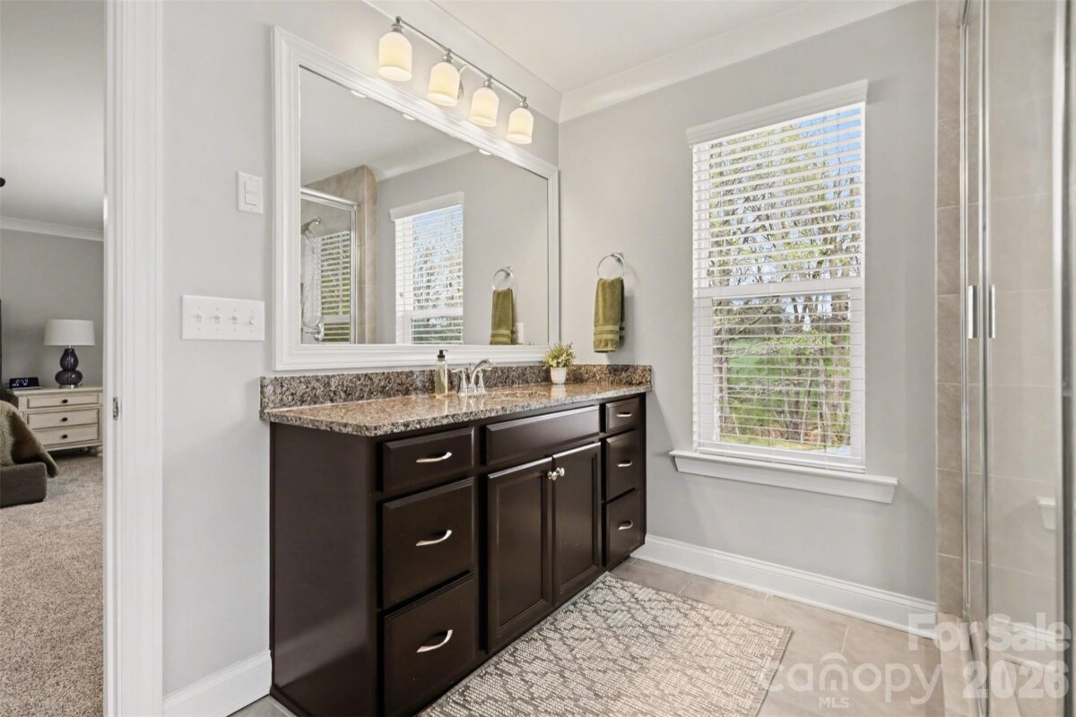 This charming home is truly move-in ready and waiting for its next owners! Nestled on a spacious, flat 0.792-acre lot, the property offers exceptional privacy, with the backyard backing up to peaceful farmland—creating a serene, rural atmosphere. Step inside and immediately notice the care and attention the current owners have poured into maintaining this beautiful home. The versatile dining room is currently used as a home office, offering the perfect work-from-home space. The chef’s kitchen is designed for both everyday living and entertaining, featuring a large island, an expansive walk-in pantry, and a convenient buffet counter connecting to the dining room. The open-concept layout seamlessly ties together the kitchen, breakfast area, and family room, all filled with natural light and overlooking the picturesque backyard. A main-level bedroom and full bathroom provide ideal accommodations for guests or multi-generational living. Just inside the garage entry, a thoughtfully designed drop zone helps keep everything organized and clutter-free. Upstairs, you’ll find a spacious loft along with two generously sized bedrooms. The inviting primary suite offers a luxurious retreat, complete with a large bathroom featuring dual sink areas and a stunning glass-enclosed shower. The oversized walk-in closet is uniquely divided into two sections, providing ample storage. Additional highlights include beautiful moldings, new carpet, updated light fixtures, new shower glass in the primary bath, a three-car garage with a finished floor, and a reverse osmosis system—just to name a few. While the home offers a tranquil, rural feel, it is conveniently located in the desirable Creek Stone community, just minutes from charming downtown Mooresville, where you’ll enjoy shopping, dining, and vibrant local attractions. The highly sought-after Mooresville Graded School District adds even more appeal.