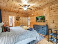 Discover this well-maintained 2-bedroom, 2-bath log cabin located in the gated Riverbend community of Lake Lure. Offering approximately 1,000 square feet of living space, this home combines rustic appeal with modern comfort. The open-concept floor plan features vaulted ceilings, a stone fireplace, and wood interiors that create a warm, inviting atmosphere. The kitchen includes modern appliances, and ample storage. The primary suite provides a private bath and peaceful wooded views, while the second bedroom is perfect for guests or family. Riverbend amenities include two private lakes, river access, a beach area, walking trails, and picnic spaces. Conveniently located near Chimney Rock Village and Lake Lure attractions, this cabin offers excellent potential as a vacation home, investment property, or full-time residence.