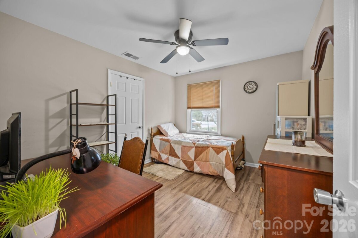 Welcome to this inviting ranch-style home that blends comfort, style, and functionality. Designed with an open-concept layout, the spacious living area flows seamlessly into the combined kitchen and dining space — perfect for both everyday living and entertaining. The kitchen features sleek stainless steel appliances, a stylish tile backsplash, and plenty of cabinet space, all complemented by durable laminate flooring that extends throughout the main areas of the home. With three well-sized bedrooms and two full bathrooms, there’s ample space for relaxation, guests, or a home office setup. Situated on a generous 0.51-acre lot, the property offers plenty of room to enjoy the outdoors. A covered carport provides convenient parking, while the storage shed adds extra space for tools, equipment, or seasonal items. This move-in-ready home delivers comfort, practicality, and room to grow — all in a peaceful setting.