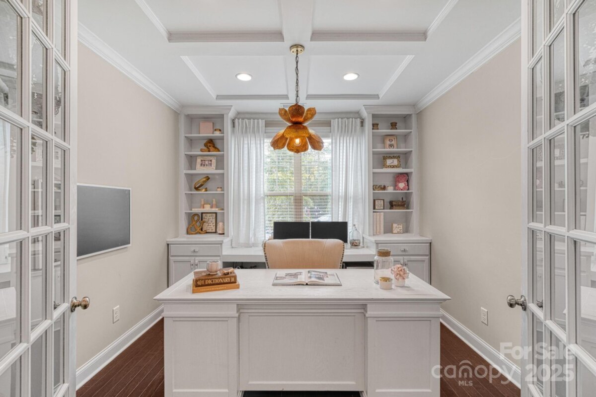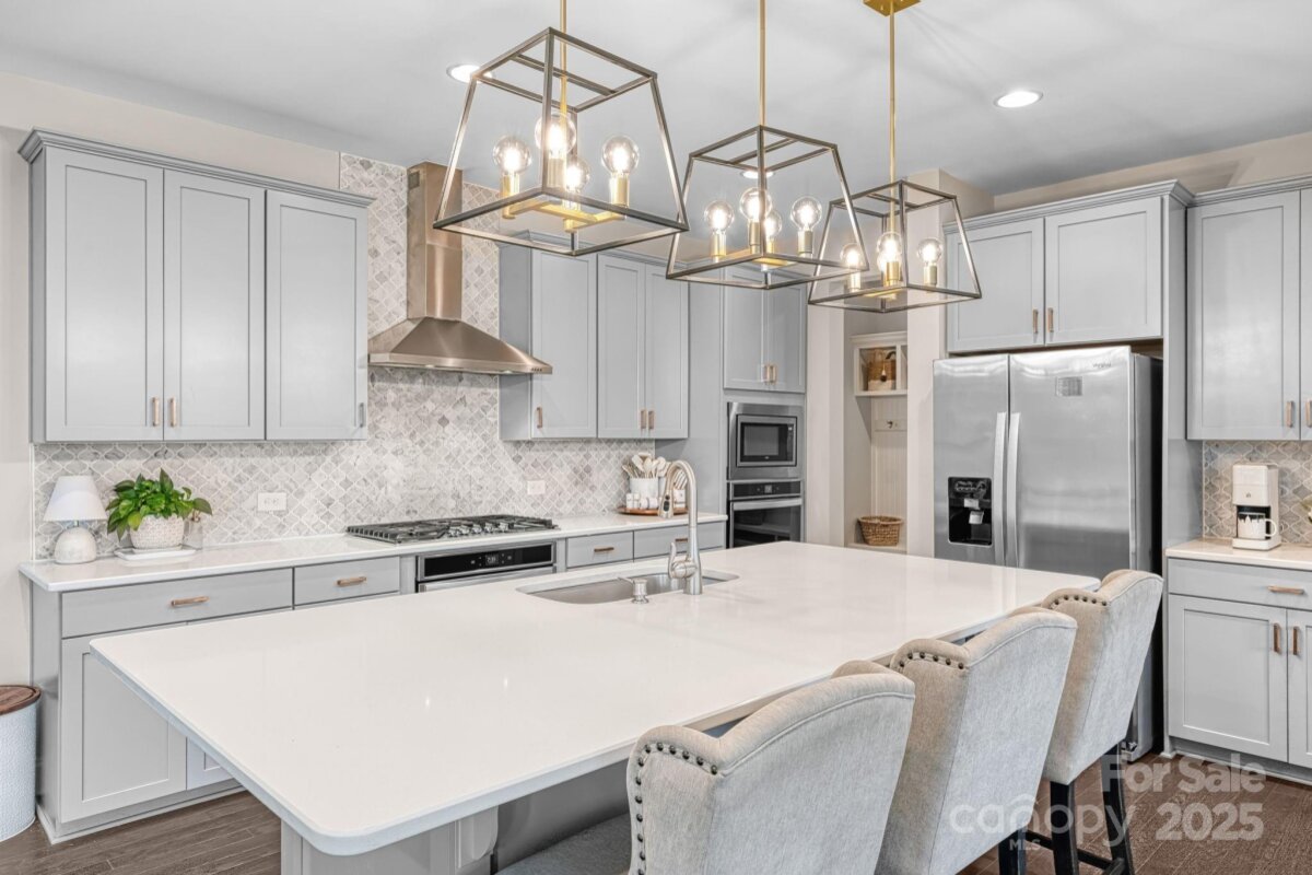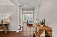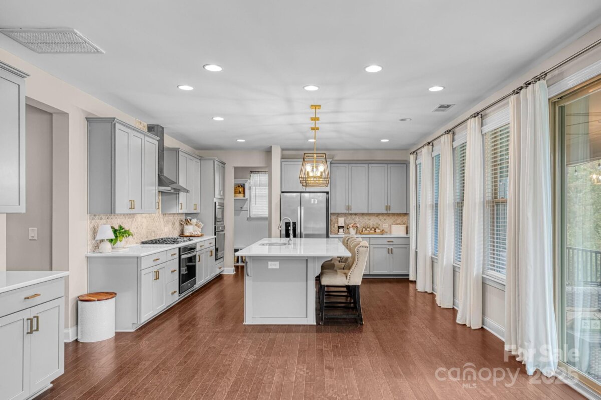 Walk-in closets in every bedroom, a kitchen built for a chef, a finished basement with a recreation room and guest suite, and a second-floor primary suite with its own retreat. This home gives you more of everything. Built in 2019, it is only six years old and offers modern features throughout. Eight-foot doors and hardwood floors on both levels create a sense of elegance and flow. The open main level is designed for both comfort and connection. The kitchen features quartz countertops, a 5-burner gas cooktop with vent hood, double ovens, a walk-in pantry, and a custom drop zone. The great room is filled with natural light from walls of windows and anchored by a stacked-stone fireplace with built-ins. Step onto the expansive screened porch and enjoy the private rear yard on this oversized corner lot. The main level also includes a guest suite with private bath, an elegant dining room, and a private office with French doors and built-ins. This is more than a home. It offers room to grow, spaces to gather, and places to recharge. From holidays in the kitchen to quiet evenings by the fire, it is ready to welcome your next chapter with comfort, connection, and style.