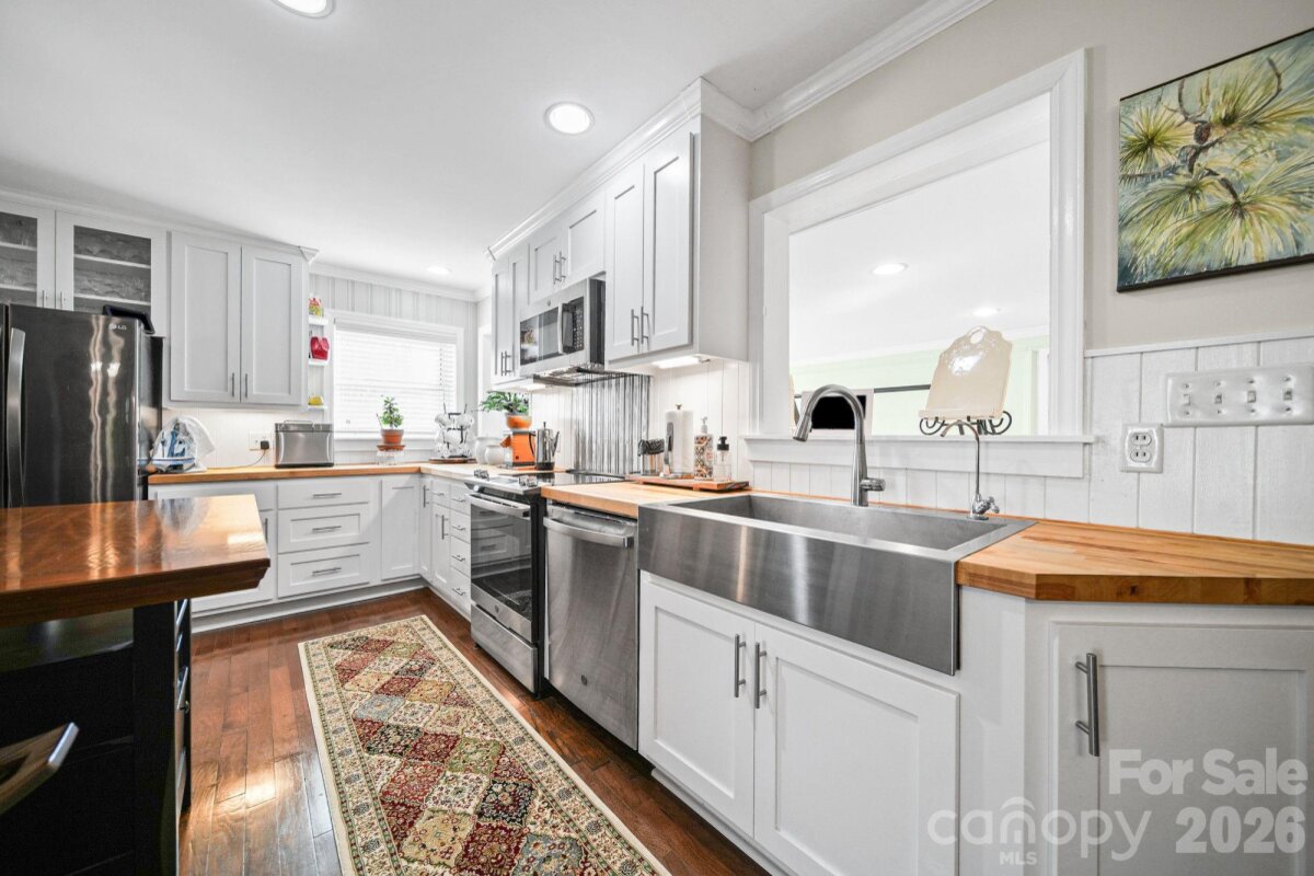 Welcome to this beautifully maintained and updated home that exudes character and timeless charm, located just minutes from the energy and convenience of downtown Lincolnton. This charming 3-bedroom, 2-bathroom home offers a cozy feel with over 1,800 square feet of living space and generously sized rooms. From the moment you enter the foyer, you'll appreciate the blend of classic character and thoughtful updates throughout the home. The stunning kitchen features new custom cabinetry, butcher block countertops, a beadboard backsplash, and stainless-steel appliances. The inviting family room boasts a brick wood-burning fireplace with an insert, a chunky mantle, and a beautiful stained-glass window. The hall bathroom includes a dual vanity, a large, tiled shower, and a custom-built bench. The primary ensuite features a wet room where the tub is separate from the shower, all enclosed with a glass door. Additional highlights of this home include built-ins, crown molding, chair railing, recessed lighting, and hardwood floors. It is equipped with a water filtration system as well. Recent updates include a roof replacement in 2021, a new deck in 2024, and newly installed wrought iron handrails at both the front and back entrances. The front porch has a stone-bonded finish that was cleaned and sealed in the last couple of years. This property also offers covered parking, a wired building/workshop, and a fenced-in backyard that provides a perfect space for entertaining or enjoying privacy. Located just minutes from shopping, dining, parks, and entertainment, this home has quick access to Highway 321 and interstates, adding to its appeal. Experience year-round activities and the vibrant lifestyle that downtown Lincolnton has to offer! If you aren't familiar with Lincolnton, it is known for its vibrant downtown central business district, which is experiencing a renaissance with local merchants offering an array of antiques, boutique clothing, fine jewelry, and unique gifts. Recently opened businesses include a music store, a recording studio, a butcher shop, and a wood-fired pizzeria. The Cloninger Rail Trail, part of the Carolina Thread Trail, runs through the heart of downtown and connects three city parks. Notably, Lincolnton can proudly claim that its main street is an official part of the Carolina Thread Trail. The community's dedication to historic preservation and the arts has led to the installation of its first public art display, featuring “Pots on Parade†face jugs in the distinctive Catawba Valley pottery style along Main Street. Additionally, murals embellish rehabilitated brick buildings, quilt squares have been added to public structures as part of the growing quilt trail movement, and a new blueway river launch and fishing pier make use of the South Fork River that flows through the city. Lincolnton is located northwest of Charlotte. Despite a population of just over 13,000, Lincolnton has successfully maintained its small-town charm while offering big-city opportunities. Schedule your showing today and discover what a gem it truly is!