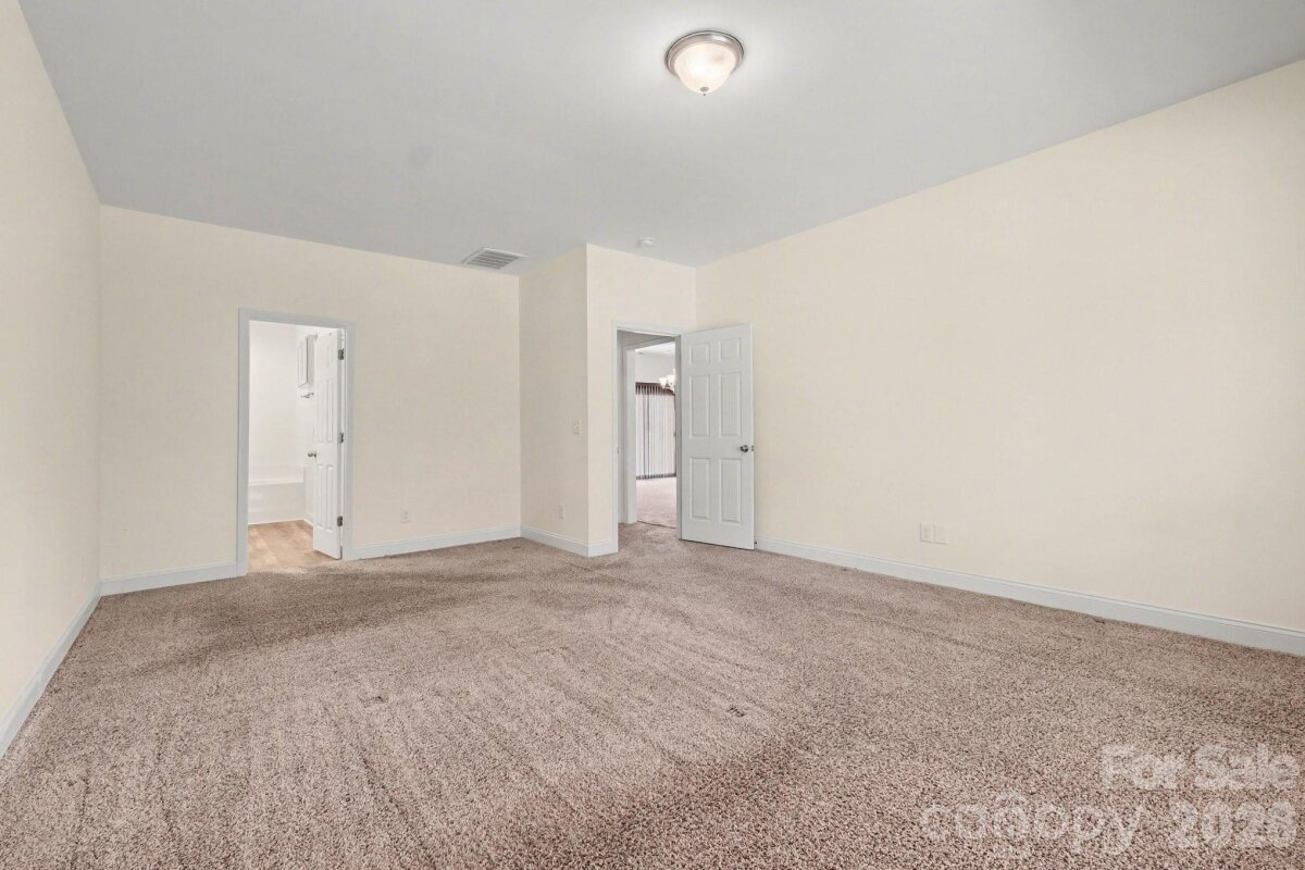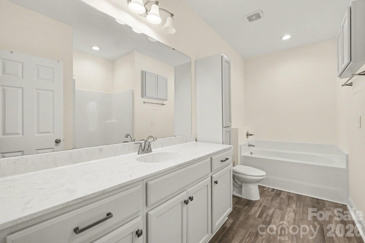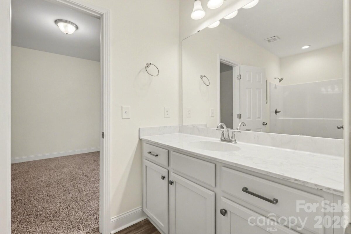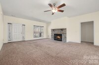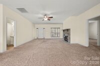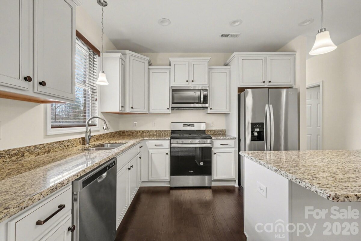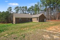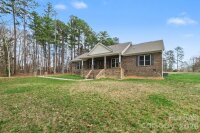 Beautifully designed spacious 4-bedroom, 3.5-bath brick ranch offering 2,304 square feet of comfortable single-level living on a private wooded lot. The home features an inviting covered front porch with stone accents and columns, creating beautiful curb appeal and a welcoming entrance. Inside, the open floor plan provides a seamless flow between the living room, dining area, and kitchen, making it ideal for everyday living and entertaining. The large living room features plush carpeting and a striking stone fireplace as the focal point of the space. The kitchen offers white cabinetry, granite countertops, stainless steel appliances, recessed lighting, and a large center island with additional seating and storage. The primary suite includes a spacious bedroom, walk-in closet, and private bath with dual vanities, soaking tub, and separate shower. Three additional bedrooms and multiple full bathrooms provide plenty of space for family, guests, or a home office. Step outside to enjoy the large backyard surrounded by mature trees, offering privacy and room for outdoor activities. The property also includes a two-car garage and a long driveway for additional parking. Conveniently located while still offering a peaceful setting, this home provides the perfect blend of space, comfort, and privacy. HO HOA!