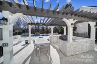 Welcome to Ardrey’s finest offering! This rare and exquisite home is set on a large private lot backing to a nature preserve and features a resort-style heated saltwater pool and spa with travertine stone, gas fire pit, and professionally designed landscaping, creating an unparalleled outdoor retreat. Located in the heart of a sought-after Charleston-style community close to dining, shopping, and top-rated schools, the home impresses with four expansive porches (front, side, and dual rear on both levels), a three-car garage, and a brand new driveway gate. Inside, refined craftsmanship and thoughtful updates abound, including dual offices on the first and second floors. A converted second-floor walk-in attic now serving as a beautifully finished office/5th bedroom with hickory hardwood floors, custom built-ins, and cabinetry. The gourmet kitchen anchors the main living space and is equipped with a Sub-Zero refrigerator and freezer, Wolf range, ice maker, large island, and custom cabinetry, flowing seamlessly into a spacious breakfast area and open great room ideal for entertaining. The primary suite on the main level is a true sanctuary with a spa-like bath renovated in 2023 featuring radiant heated floors, custom cabinetry, and built-in powered medicine cabinets, along with custom closets throughout the home. Upstairs offers three additional bedrooms, all with en-suite baths, a loft or bonus space, balcony access, extensive walk-out storage, and a huge attic with custom shelving and extra-wide pull-down stairs. Outdoor living is elevated with a travertine-clad kitchen featuring a built-in Lynx grill and refrigerator, while behind-the-scenes upgrades include a French drain, encapsulated crawl space, irrigation system, tankless water heater, plumbing and electrical updates, and a full CAT6-wired smart home with integrated audio, video, built-in ceiling speakers, and a dedicated IT cabinet—truly too many upgrades to list in this exceptional, must-see home.
