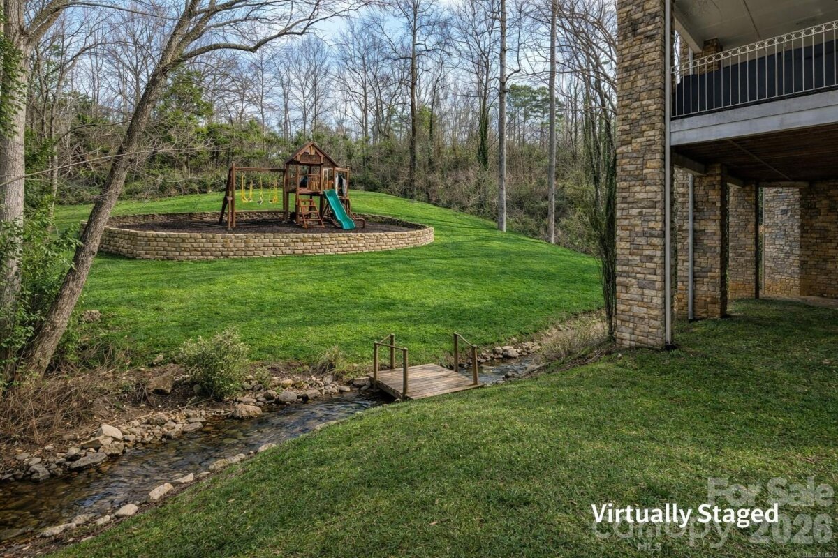 Fall in love with this exquisite custom built Executive Estate, privately nestled on approximately two acres & surrounded by the beauty of nature. Step inside and be instantly captivated by the breathtaking soaring 15-foot great room, where a stunning fireplace, flanked by custom built-ins, serves as the focal point, and walls of windows flood the space with natural light while framing peaceful views of the trees beyond. Step out onto the expansive upper deck to breathe in the fresh air and take in the serene setting. With 6,000 square feet of living space, across three thoughtfully designed levels, this home offers exceptional space for both everyday living and elegant entertaining. The sophisticated dining room sets the stage for memorable holiday gatherings, while the designer chef’s kitchen is truly the heart of the home, featuring a dramatic waterfall island, updated quartz countertops, gas cooktop, a peninsula with seating for four, and a charming eat-in area overlooking the picturesque backyard. Start your mornings with coffee on the deck as you listen to the tranquil sounds of the nearby stream. The main-level primary suite is a private retreat, complete with heated floors, dual walk-in closets, a soaking tub, and a separate walk-in shower. Upstairs, two generously sized bedrooms each offer their own en-suite baths. The lower level is designed for relaxation and versatility. Unwind by the fireplace in the family room, curl up with a book on the expansive lower deck, or enjoy the additional two bedrooms with walkout access to the deck, plus a dedicated workout room. These rooms also provide flexibility for an additional home office or hobby space. Ideally located in the heart of Hickory, just minutes from downtown shops, restaurants, and Lake Hickory, this extraordinary property offers luxury, privacy, and convenience, all in one remarkable home. Hurry, this gem won’t last long!