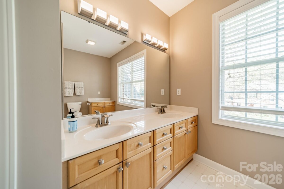 The perfect match for home and neighborhood, this home packs all features that you could ask for, in a neighborhood with amenities you didn't think you could have at this price. Brick front home, with a side-load garage, and a spacious level backyard of both sun and shade. The lake access is what you really want though, with a community boat ramp, and pool that overlooks the water. Deeded boat slips occasionally come available. The home's interior is warm, bright, and spacious with a beautifully updated kitchen that flows right into other living areas, and a downstairs home office/guest bedroom with an adjacent full bathroom. The upstairs meets every need with 4 bedrooms and 2 full bathrooms, and a huge walk-in attic that makes storage easy and accessible.