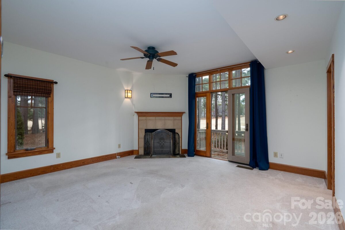 Welcome home to resort living in what feels like your mountain home hide away nestled in the trees on the 11th green of top ranked Old North State Club -- one of North Carolina’s premiere lake and golf communities. This is refined luxury in relaxing Uwharrie Point and Badin Lake where you have country club, tennis and pickle ball courts, lake access, pools, marina, and year round peace and beauty. THIS RARE PROPERTY COMES WITH AN INCREDIBLE EXTRA .41 acre adjacent lot to give you nearly an acre of prime real estate known for its recently renovated Tom Fazio-designed championship golf course! You can leave it as extended yard/acreage, build on, or sell it to a future homeowner! As if an extra lot wasn't enough, many unique features include: custom limestone counter tops in the kitchen; 100 year-old heart of pine floors throughout; solid wood doors; wood beams adorn the vaulted ceiling in the expansive great room with stone fireplace where an abundance of windows make for a spectacular view. Main level has your primary bedroom with a cozy fireplace and french doors that open to a private deck to enjoy your morning cup of coffee. There is a dedicated office/study with tons of built-ins and another fireplace. Two of the bedrooms upstairs have built-in desks, open shelving and double closets, and two flex rooms that could be used as a playroom or media room. And then you have multiple outdoor living spaces: a large covered front porch with stacked stone columns; a screened porch overlooking the golf course; multiple decks; and also a covered terrace. Combined properties are priced to sell and under market value. Additionally, seller is offering 1 yr American Home Shield home warranty. If you seek a permanent or vacation retreat, you don't want to miss out on this exceptional opportunity!