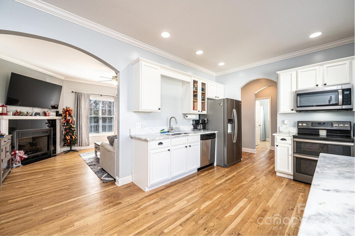 Prime Location Near CVCC and Hickory Shopping District! Discover this beautifully maintained 2008-built ranch on 0.45 acres, offering 1,233 HSF, hardwood floors throughout, tile in the baths, and a thoughtful split-bedroom plan. Enjoy 9-ft ceilings, crown molding, arched entryways, and a cozy gas-log fireplace in the living room. The updated kitchen features granite countertops and all appliances conveying (electric range, microwave, refrigerator, dishwasher), with a small laundry room with pocket door conveniently located nearby. The primary suite includes a dual vanity, walk-in closet with pocket door, and a private bath. Two additional bedrooms share a pretty updated hall bath. Outdoor living shines with a freshly painted deck, wooden privacy fence, storage building, and a patio with upscale fire pit—perfect for entertaining. Additional features include a double garage, well water, city sewer, 2024 heat pump, and NO HOA. Convenient to Hickory shopping, restaurants, and CVCC. Move-in ready and full of charm. This property is within 1/2 mile of a voluntary agriculture district.