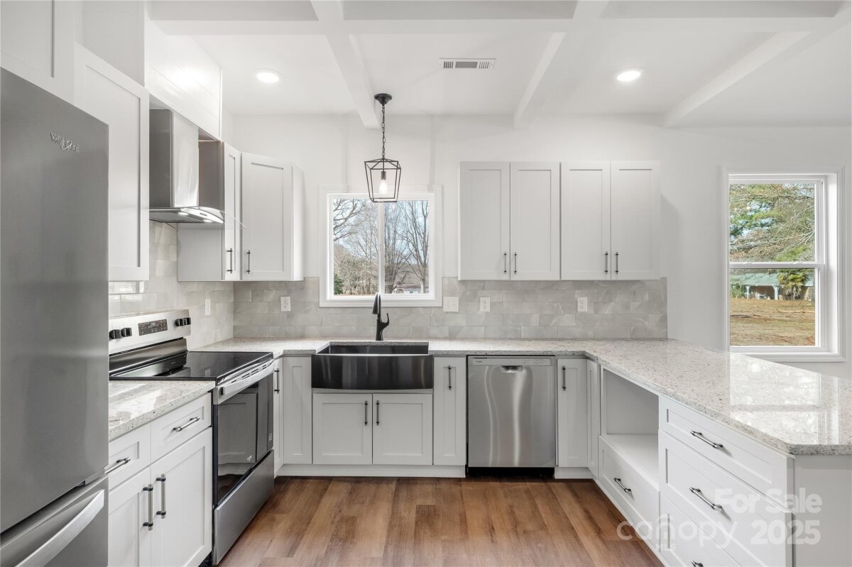 This elevated ranch home has been meticulously designed with high end finishes and is located in a great established neighborhood with 1-car garage! The front porch welcomes you into the living room that is well lit with natural light from the cathedral ceiling, while the LVP floors seamlessly lead you into the gorgeous kitchen boasting stainless appliances, coffered ceiling, peninsula with bar seating, hood vent, soft close cabinetry, granite counters and walk-in pantry! Make your way to the beautiful primary suite with tray ceiling, accent wall and walk-in closet. No expense was spared in the primary bath with a grand 8 ft glass & tile surround shower with rainfall fixture, dual vanity with granite counters and tile floors. There are 2 add'l bedrooms, ample in size, plus hall bath w/ tile surround shower, granite counter & tile floors. Additional features include an adorable covered back patio, dedicated laundry room, space off the garage entry for a drop zone, all LVP & tile floors (no carpet), 1-car garage with epoxy floor, only 1 step entry into the home, no HOA, extra large side yard, connected to public water and comes with 10-year structural warranty! This home features so many upgrades and custom features that are hard to find at this price! You'll appreciate the quality construction and elevated finishes - not an average cookie cutter home! Close to everything you need - dining, shopping, movies, medical centers, parks, recreation, downtown Shelby and 10 miles to Gardner Webb University. *USDA ELIGIBLE with no down payment. You may also qualify for up to $20,000 in down payment & closing cost assistance! Call preferred lender for details!