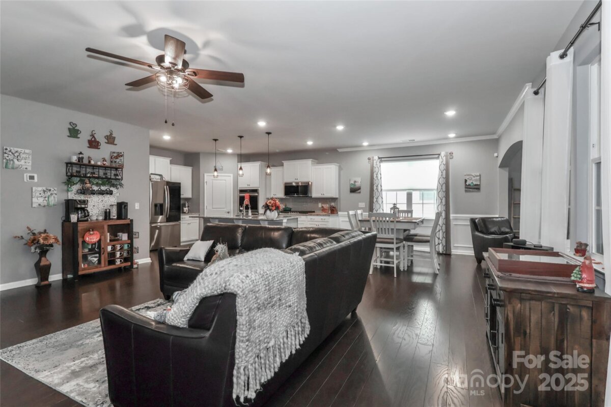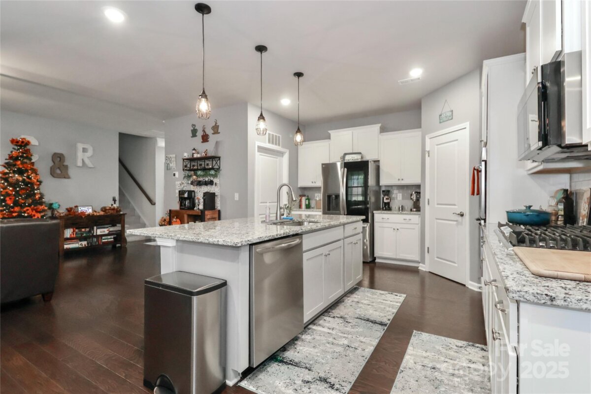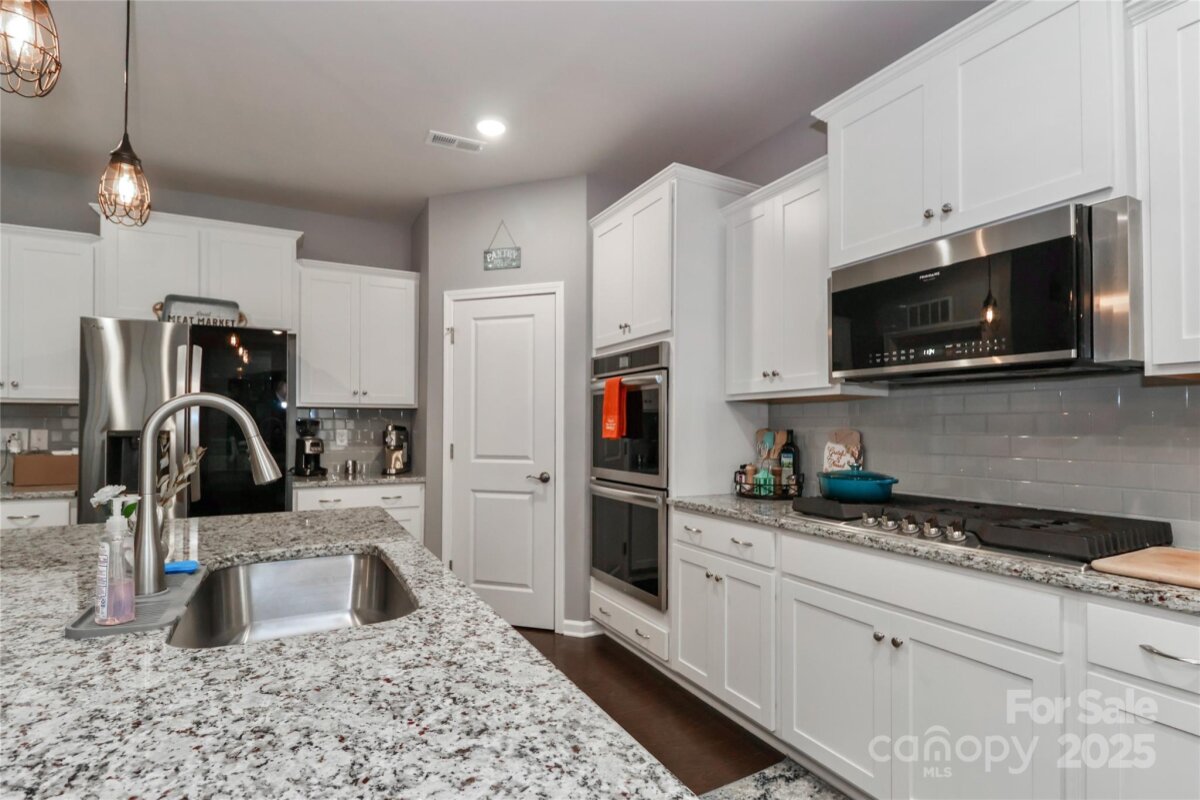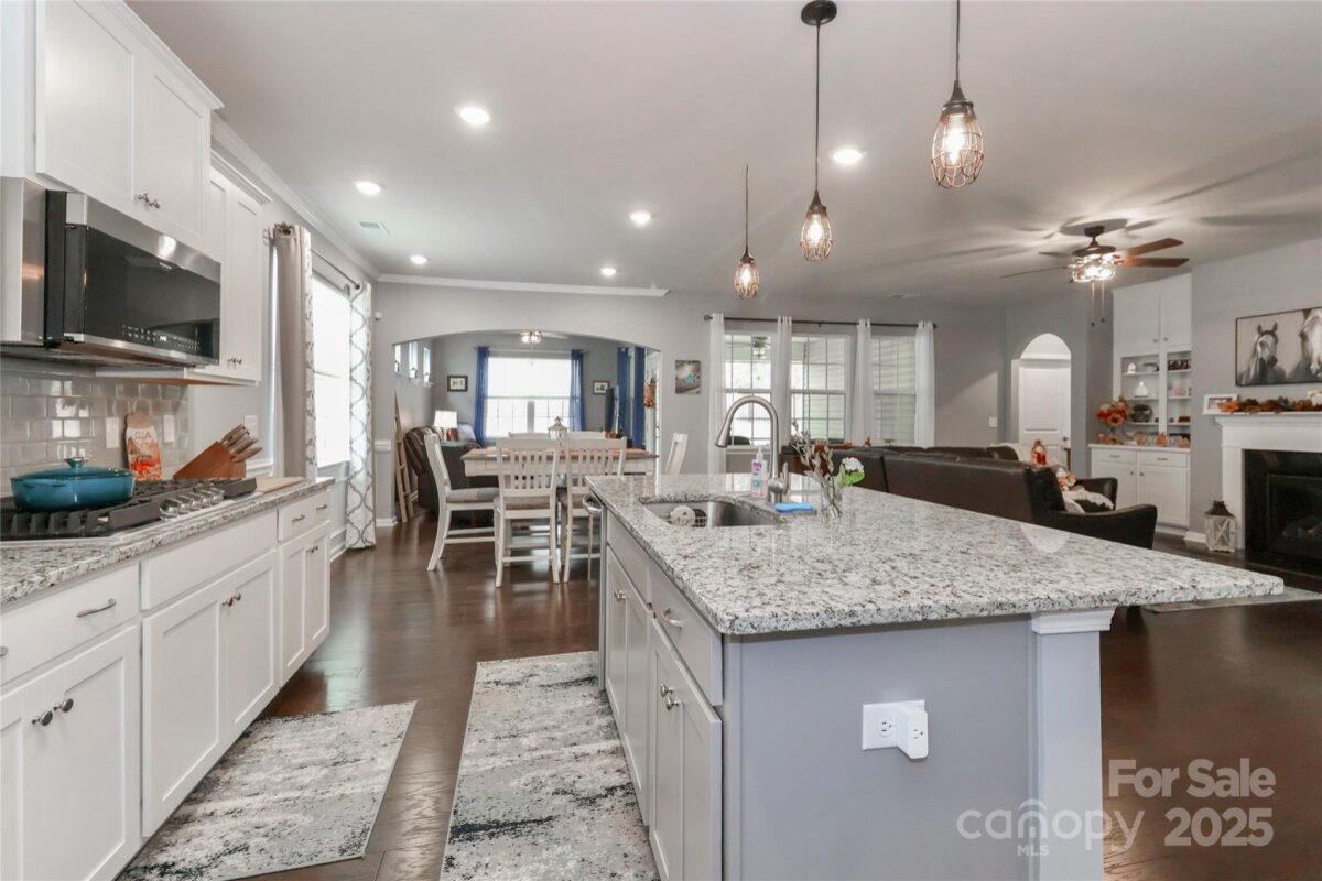 Located in the desirable Gambill Forest community with planned amenities including a pool, clubhouse, trails, sidewalks, and streetlights—all within the Mooresville Graded School District! This open floor plan features a spacious kitchen with subway tile backsplash, quartz countertops, stainless steel appliances, and a gas range, overlooking the great room. The primary bath includes a 5’ tiled shower. Additional features include a fenced yard, LeafFilter gutter guards, a whole-house automated system with water monitoring, a front door camera with security system, and the property backs to a horse pasture. Enjoy being close to downtown Mooresville’s shops, dining, and community events celebrating the town’s racing heritage, plus nearby Liberty Park and outdoor recreation on Lake Norman.