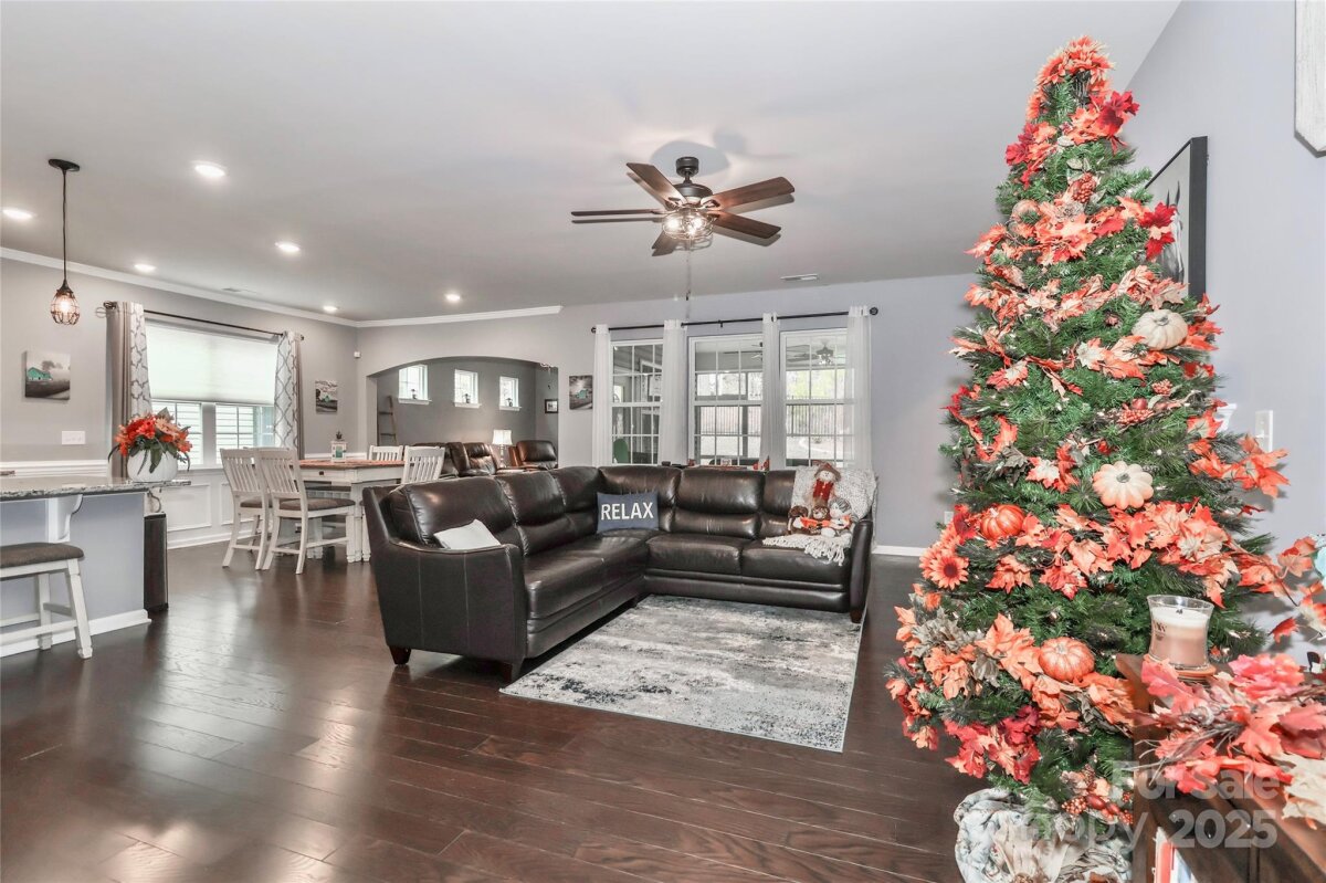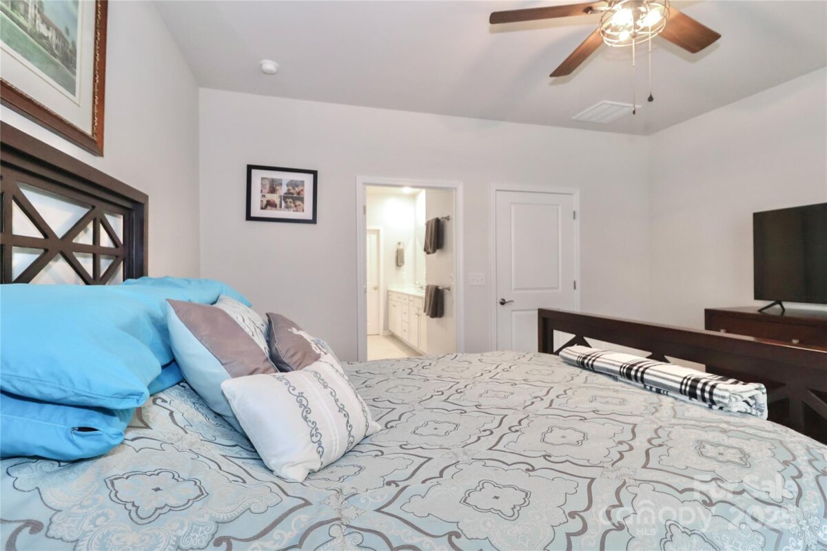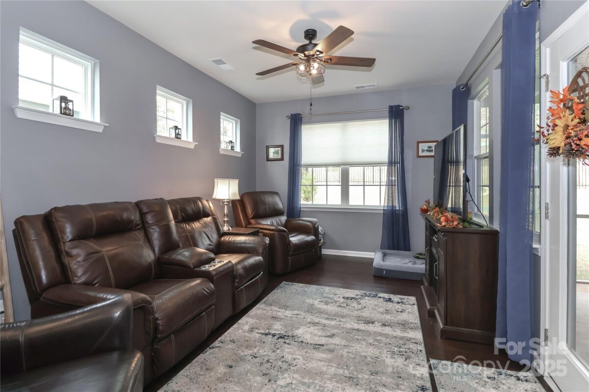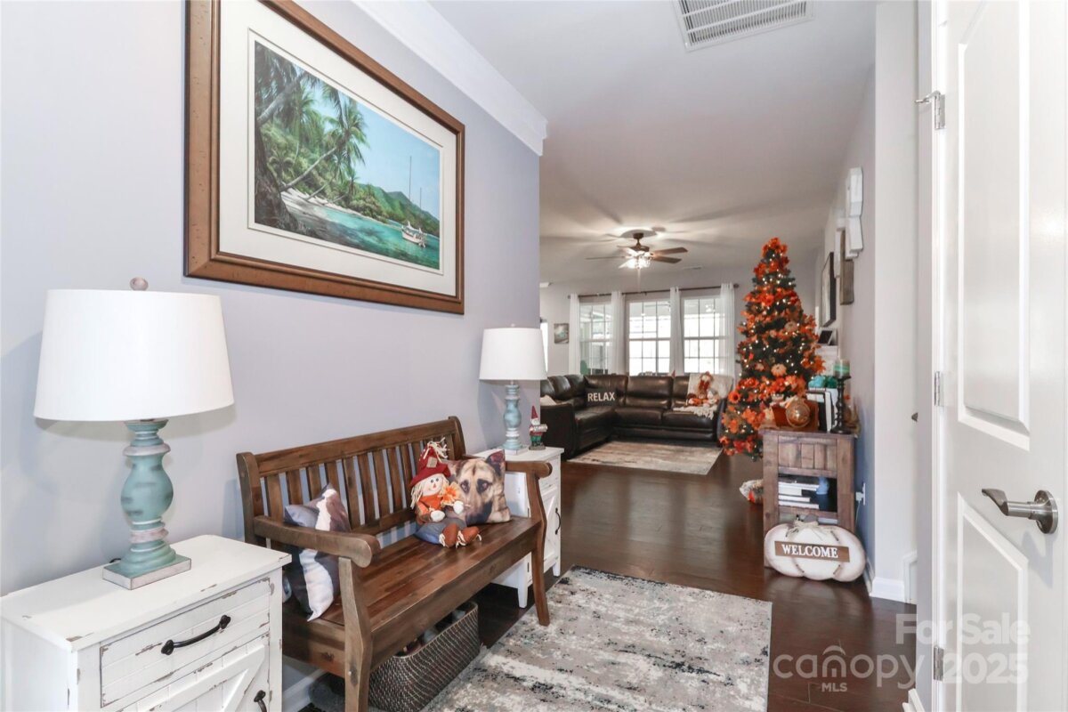 Located in the desirable Gambill Forest community with planned amenities including a pool, clubhouse, trails, sidewalks, and streetlights—all within the Mooresville Graded School District! This open floor plan features a spacious kitchen with subway tile backsplash, quartz countertops, stainless steel appliances, and a gas range, overlooking the great room. The primary bath includes a 5’ tiled shower. Additional features include a fenced yard, LeafFilter gutter guards, a whole-house automated system with water monitoring, a front door camera with security system, and the property backs to a horse pasture. Enjoy being close to downtown Mooresville’s shops, dining, and community events celebrating the town’s racing heritage, plus nearby Liberty Park and outdoor recreation on Lake Norman.