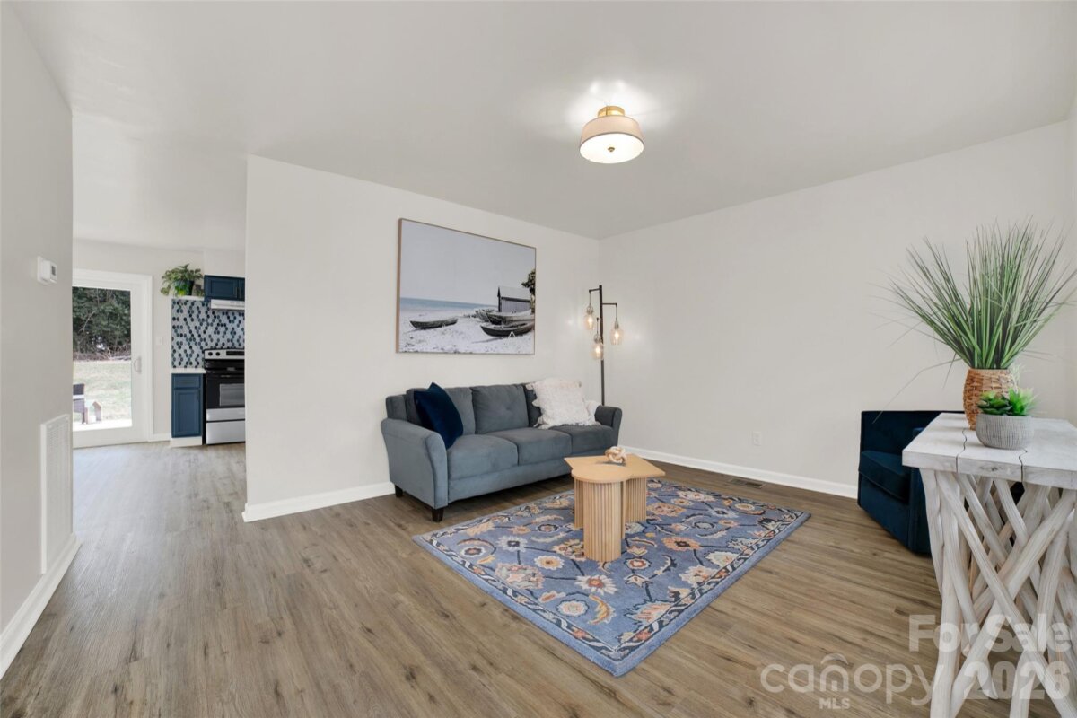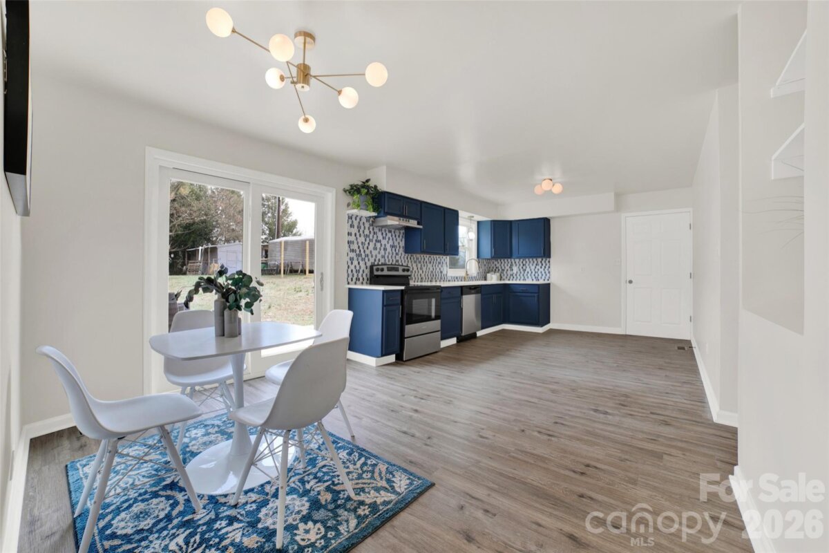 This beautifully updated 3 bed 1 bath home is move-in ready. Featuring a brand-new roof, new energy-efficient windows, and fresh paint throughout, creating a bright and inviting interior. The stunning new kitchen showcases brand-new cabinetry, elegant quartz countertops, and modern gold finishes — perfect for both everyday living and entertaining. New stainless steel stove, hood fan, and dishwasher are included. Durable luxury vinyl plank flooring runs throughout the home, offering carpet-free living and easy maintenance. Step through the new sliding door onto a brand-new deck that creates a seamless indoor/outdoor connection — ideal for relaxing, grilling, or hosting guests. The remodeled bathroom includes a new tub/shower combo, and all new fixtures with clean, contemporary finishes. Home includes: new electric water heater, new HVAC system including air-conditioner, all offering peace of mind! Property offers a substantial yard for your imagination on a dead end street. Ideally located with quick access to I-40, this home offers an easy commute to Hickory and Asheville while being just minutes from downtown Morganton. Enjoy convenient access to shopping, dining, medical facilities, schools, and everyday essentials — all close to home. A turnkey opportunity perfect for first-time buyers, downsizers, or investors looking for low-maintenance living with modern updates.