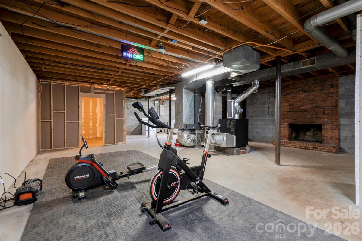 Full brick 3 bedroom, 2 bath home with basement offering space, character, and versatility. The main level features a welcoming living room with built-ins, a den/dining room with a wood-burning fireplace, and an eat-in kitchen. The primary bedroom includes a private bath, while two additional bedrooms provide flexibility for family, guests, or a home office. Hardwood flooring throughout. Enjoy relaxing on the large rocking chair front porch and take advantage of the attached double car garage. Outdoor living continues on the rear deck overlooking the fenced backyard, with a storage building for added convenience. The spacious basement expands your options with a second wood-burning fireplace, half bath, laundry area with sink, and lots of storage. With a workshop area and garage door access, this space is ideal for hobbies, projects, or future additional living space. Washer, dryer, and all appliances, including the refrigerator remain. This home is conveniently located as well. Schedule your showing today.