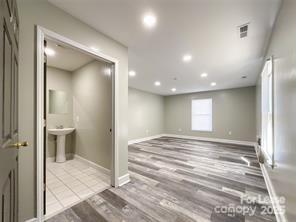 Commercial/light industrial space available. 2300+ square foot building with 4 plus office areas 3 bathrooms (2 half and 1 full). 1500 sq ft main level with additional 700+ upstairs with independent entrance, 1/3 acre cleared gravel lay down area with electric gate. Yard fenced and barbed. 2 bay metal workshop with roll doors. Paved front parking.