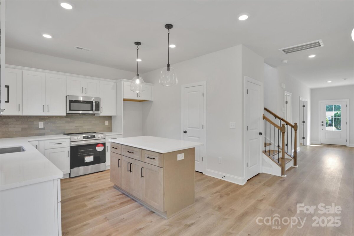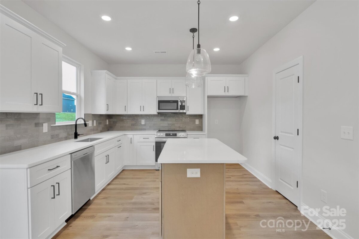 Step inside the Cherry floorplan, where modern design meets everyday functionality. The main level features an open-concept layout perfect for gathering, complete with a guest bedroom and full bath for convenience. The kitchen is beautifully appointed with quartz countertops, tile backsplash, stainless-steel appliances, a gas range, and soft-close dovetail shaker cabinets. Upstairs, the spacious primary suite is joined by two additional bedrooms, a full bath, and a conveniently located laundry room. Bathrooms showcase double quartz vanities, framed mirrors, and upgraded cabinetry. Built by Red Cedar Homes, this home also includes a Maverick 2/10 Warranty and a sump/gravity pump for added peace of mind.