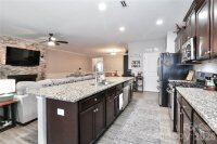 Welcome to 180 N Cromwell Drive in desirable Kensington Village! This beautifully maintained 3-bedroom, 2-bath ranch home, built in 2018, offers 1,930 square feet of thoughtfully designed one-level living. Step inside to an open and inviting floor plan featuring a spacious great room with a cozy gas log fireplace, perfect for relaxing or entertaining. The kitchen flows seamlessly into the dining area and living space and features an upgraded kitchen faucet, new disposal, and soft-close cabinet features for added convenience and style. Updated light fixtures in the laundry and dining areas add a modern touch. The primary suite offers comfort and privacy, highlighted by a custom accent wall and a full bath. Two additional bedrooms provide flexibility for guests, a home office, or hobbies. Additional updates include new toilet internals and retractable hoses for peace of mind. Enjoy the convenience of a main-level laundry room and an attached 2-car garage featuring an epoxy-coated floor, added workbench, extra storage, and enhanced lighting. The concrete driveway and garage-facing front entry provide great curb appeal and functionality. The lot includes a fenced backyard with added garden beds, and a dedicated trash can enclosure, creating both beauty and practicality. Don’t miss your opportunity to own this move-in ready ranch in a prime Mooresville location!