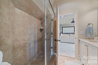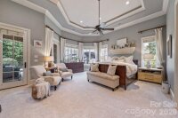 Experience refined luxury living in The Point, one of Lake Norman’s most prestigious golf and waterfront communities. This exceptional estate spans 5,177 sq. ft. of meticulously curated living space on a beautifully landscaped lot overlooking the 2nd tee ox of Trump National Golf Club. Step through the gracious foyer into a soaring living and dining rooms with 12-foot ceilings - a dramatic introduction to elegant daily living. The main level features a dedicated office with French doors and vaulted ceiling, and a serene primary suite complete with a spa-like 5-piece bath and spacious walk-in closet. Two additional bedrooms with a Jack & Jill bath offer comfort and privacy. The kitchen is a chef’s delight, boasting a large island with seating, built-in refrigerator, gas cooktop, beverage fridge, built-in pantry, and breakfast area with views of the backyard oasis. A cozy family room with tray ceilings and a gas fireplace flows effortlessly into a hidden, recently added addition, where you will find a private bedroom suite with full bath and sitting room, offering patio access ideal for guests or multi-generational living. The upper level reveals a versatile loft/yoga room, a spacious bedroom with a convenient half bath, along with a bonus/media room above the 3-car garage with its own full bath. Outdoors, enjoy resort-style living with a stone patio centered by a gas fireplace, pool and spa, and a fully fenced yard with privacy landscaping. Entertain in your custom built-in BBQ area featuring sink and storage, or gather around the dedicated fire-pit seating area - perfect for evening relaxation. Significant upgrades include 2020 septic expansion, pergola, fire-pit, new carpet, and exterior lighting, plus fresh exterior paint in 2025. This property also includes a deeded boat slip (Pier Z, #14). Your gateway to Lake Norman’s 520 miles of shoreline and boatable waters. This is more than a home, it’s an experience. Elegant yet inviting, private yet connected, captures the best of golf, lake, and luxury living in one extraordinary address.
