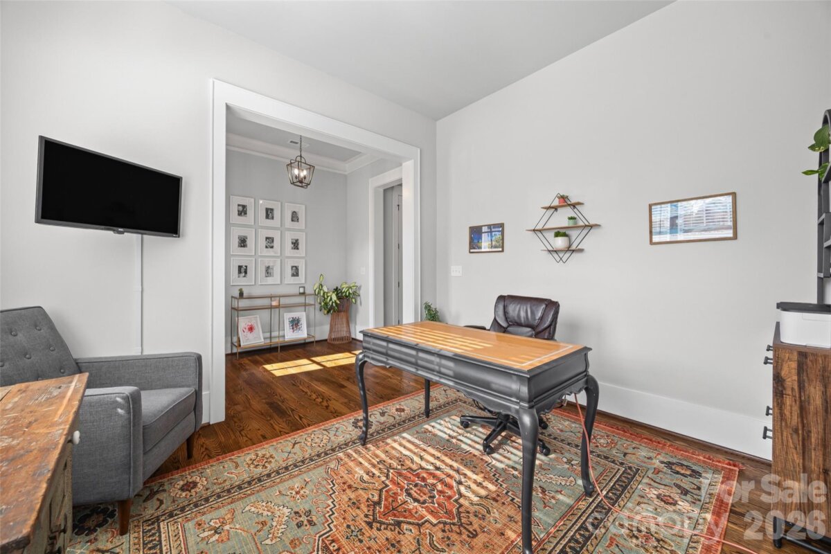 Modern style meets timeless charm in this stunning Saussy Burbank-built home with generous backyard, located in the heart of Oakhurst, one of Charlotte’s most sought-after neighborhoods! Built in 2019, this 4-bedroom, 3.5-bath home with a dedicated office combines contemporary comfort with thoughtful craftsmanship. Step inside to find bright, open living spaces, high ceilings (10-ft on main), and designer finishes throughout. The gourmet kitchen features a large center island, quartz countertops, stainless steel appliances, and custom cabinetry — perfect for everyday living or entertaining guests. A private office on the main level makes working from home easy, while the spacious great room flows seamlessly to a Trex deck and paver patio, ideal for outdoor dining or weekend lounging. Upstairs, the primary suite offers a tranquil retreat with a spa-inspired bath, walk-in shower, and generous closet space. Three additional bedrooms and two full baths provide plenty of flexibility for family, guests, or hobbies. Enjoy a large fenced backyard with tree save behind, offering both privacy and natural beauty + no HOA — a rare combination in this location! Perfectly positioned just minutes to Plaza Midwood, SouthPark and Uptown Charlotte, this home offers the best of city convenience with neighborhood charm. Welcome Home!