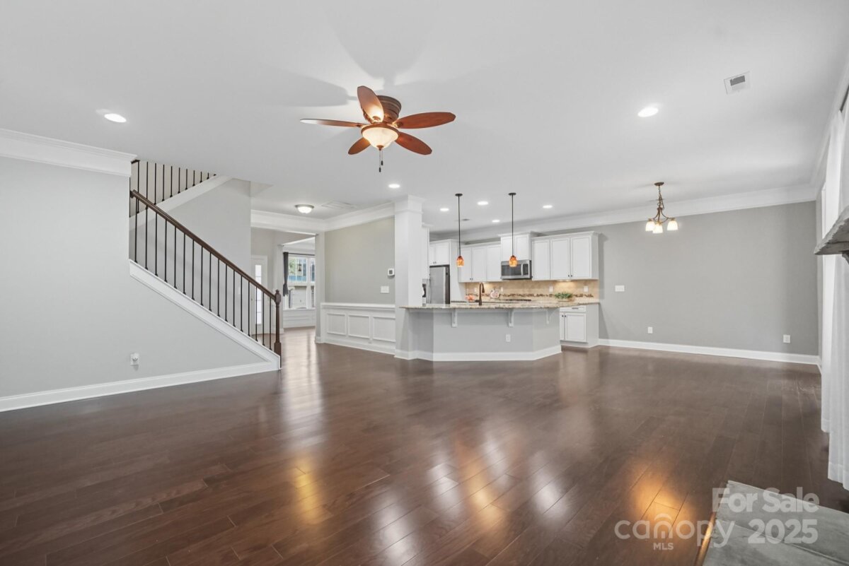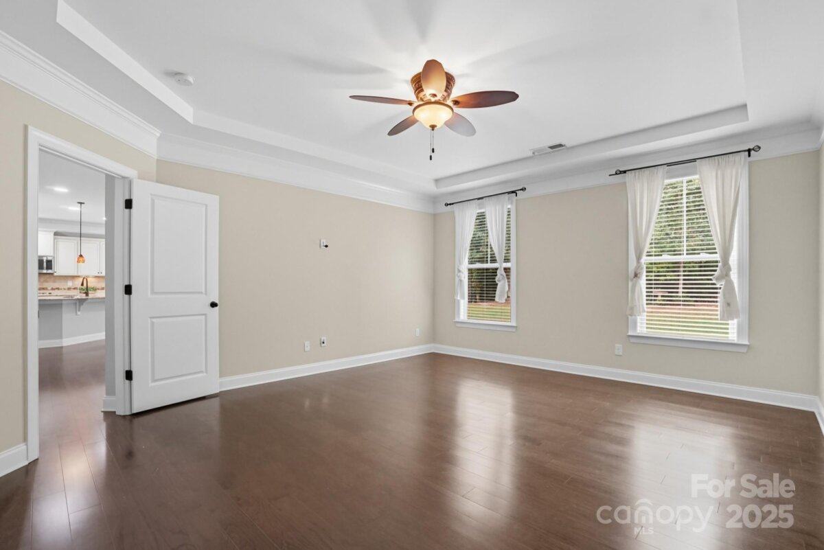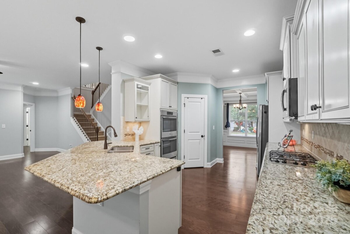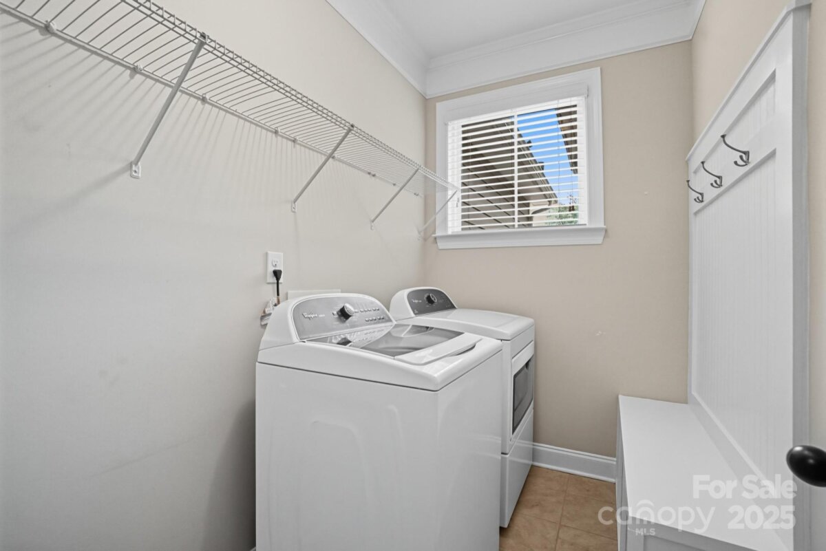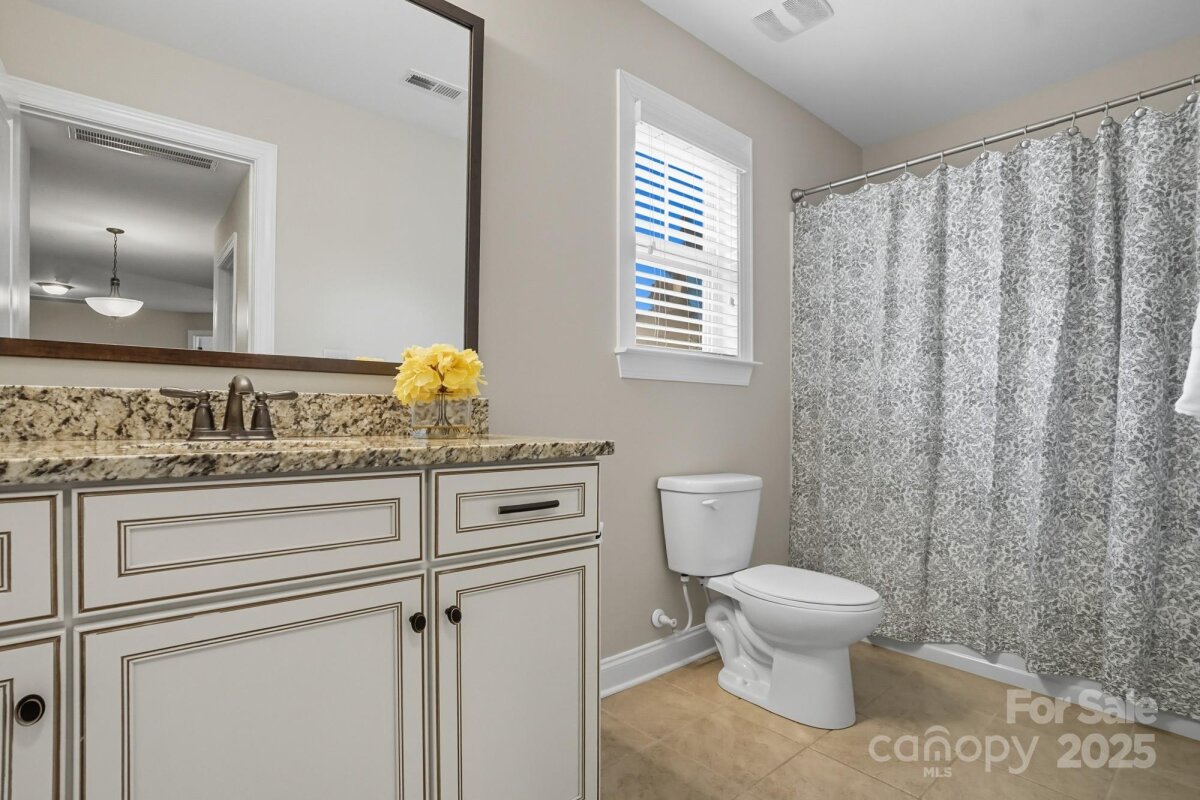 Nestled in the desirable Lake Ridge community of Tega Cay, this stunning 4-bedroom home seamlessly blends indoor comfort with exceptional outdoor living spaces. Relax on your charming rocking-chair front porch, or retreat to the private paver patio featuring an outdoor fireplace—perfect for entertaining, dining al fresco, or unwinding while overlooking your flat, fenced backyard that backs to serene woods. The primary suite offers a peaceful sanctuary with spacious bedroom and spa-like bath featuring a standalone shower, separate water closet, and generous walk-in closet. Soaring ceilings and expansive windows bathe the interior in natural light, while rich hardwood floors flow throughout the main level. The open-concept dining and living areas create an ideal setting for both everyday moments and special gatherings. The eat-in kitchen delights with abundant cabinetry and ample counter space—a dream for home cooks and entertainers alike. Upstairs, discover three large bedrooms plus a flexible bonus room that could easily serve as a fifth bedroom! Every bedroom features walk-in closets, and the thoughtful Jack-and-Jill bathroom layout between two bedrooms adds convenience. Lake Ridge offers an incredible lifestyle with Olympic-sized community pool complete with thrilling water slide, scenic walking trails, tennis and basketball courts, playground, fitness center, and clubhouse with small kitchen for hosting events. But wait, there's more- situated in a top-rated school district, just a short walk to Catawba Park, and minutes from Nivens Creek Landing boat launch for easy lake access. Welcome home!