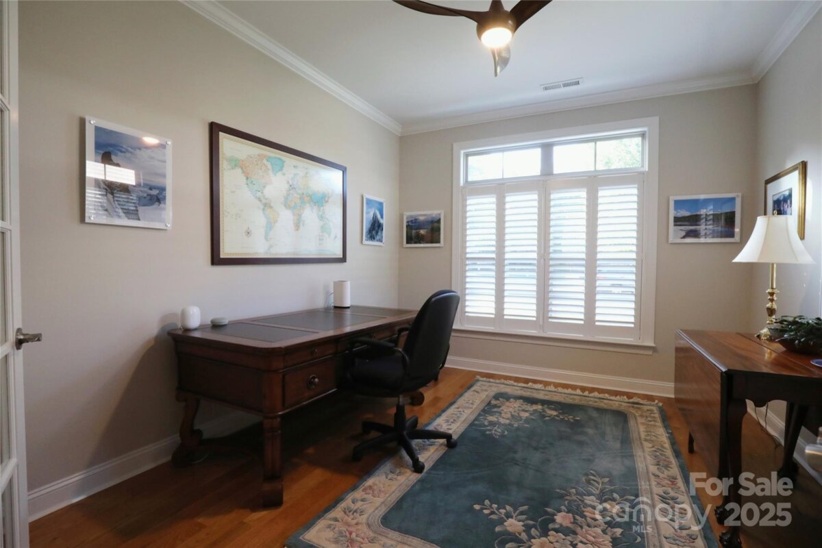 One-of-a-kind customizations and upgrades highlight this beautiful home with 3 bedrooms, 3 bathrooms PLUS bonus room and office in The Courtyards at Wesley Chapel. Exclusive estate-sized screened porch with trex decking added by current owner with can lighting, ceiling fans, and beadboard ceiling. Built to maximize enjoying the outdoor surroundings of this premiere lot featuring a fenced yard, mature trees, and custom landscaping on a cul-de-sac that backs to natural area maintained by the HOA. The only home in the neighborhood allowed to upgrade to 3 1/4 inch white oak hardwood floors in the neighborhood! No carpet! Custom gas log fireplace with built-in bookshelves in living room centers the home and connects to kitchen and dining. Plantation shutters in front office and all front facing windows. Spacious kitchen with large island includes cabinetry with slide-outs, soft-close dove-tailed drawers, custom shelving in double pantry, gas range, and new dishwasher (2025). Huge Laundry Room includes custom cabinetry, utility sink, wine fridge, and granite counters to serve as overflow serving area as well. Primary suite on main level upgraded with additional windows, a walk-in custom-designed closet, and large primary bath with double vanity, walk-in shower, private water closet, and linen closet. Spacious 2nd bedroom large enough for a king bed on main level with full bath. 3rd bedroom with 3rd bath along and Bonus Room upstairs. Amazing storage throughout the home including walk-in storage and deep closet under stairs with built-in shelving. 4 Solar tubes for additional natural light. Refrigerator, wine fridge, washer and dryer remain with acceptable offer. Oversized garage includes Tesla electric car charger. Hardiplank and stone exterior and gutter guards added for ease of maintenance. Upgraded with crawl space foundation. HOA dues include irrigation and lawn maintenance. Come see this well-designed floor plan with ample storage and stunning upgrades to delight! Don't miss all the HOA amenities info and more at www.cwc.communitysite.com