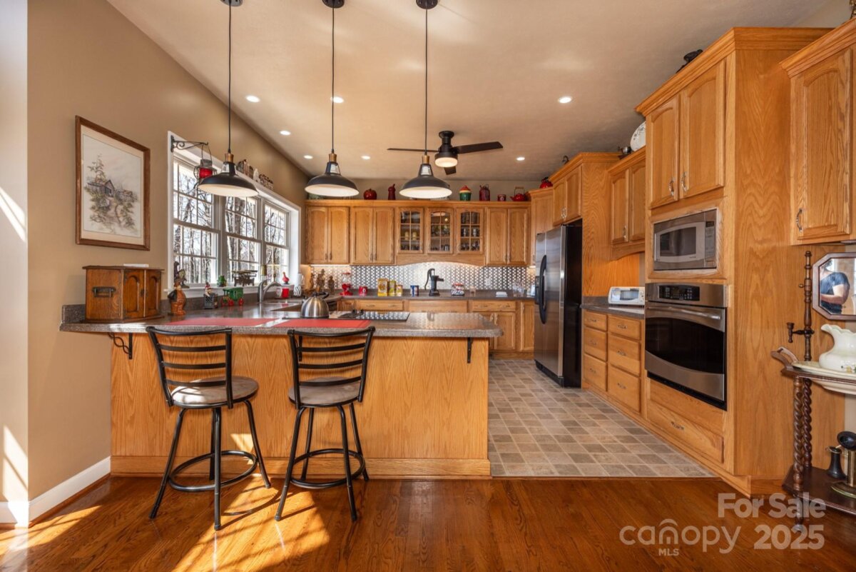Custom built 3-bedroom home with open floor plan has one floor living with 4' wide hallways and 3' doors. Solid oak hardwood floors and 6" exterior walls. The Great Room with fireplace provides lots of space for entertaining. Abundant storage in oak kitchen cabinets and large walk-in pantry. Enjoy the beautiful large deck while looking at the extraordinary long-range views. Primary bedroom has another spot to see the beautiful views. And there is a walk-in closet. Primary bath has a 2-person Jacuzzi, a wheelchair accessible shower and programmable floor heat. All utilities are on the main level. There are deer, turkey, bear and other wildlife for the avid hunter on this 9.08 acres. Large oversized 2 car garage. Full large unfinished basement with many options. You can enjoy your morning coffee on the deck or patio and watch the wildlife as they move through the cleared woods. There is an auxiliary generator transfer switch. SELLER HAS INCLUDED MOST OF THE FURNITURE AND ALL APPLIANCES!