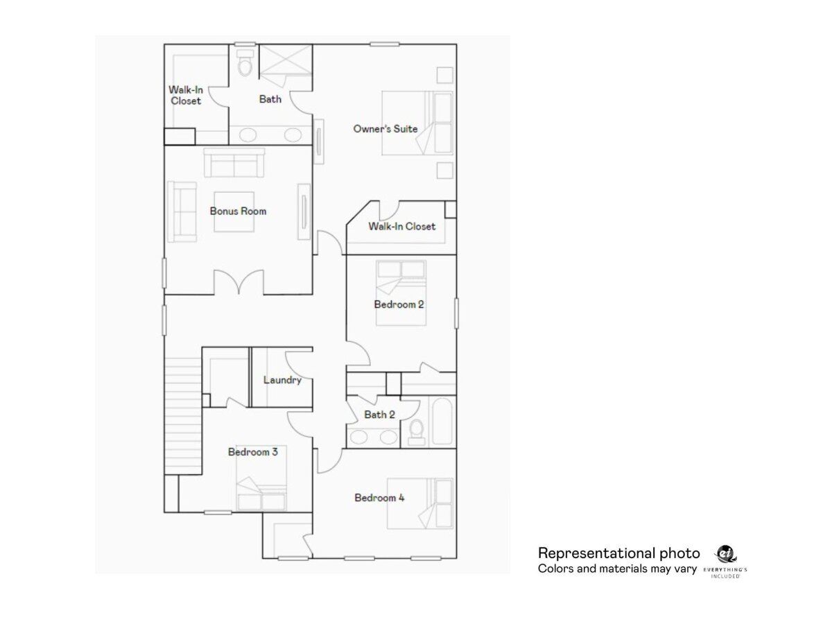 This new two-story Frost floorplan provides space for the whole family to thrive. The first floor features an open design among the family room, kitchen and breakfast room in addition to a secluded secondary bedroom that’s ideal for guests and a two-car garage. Upstairs are a versatile bonus room that adds shared living space and four bedrooms including the owner’s suite. Plus, our signature Everything's Included program means you will get quartz or granite kitchen countertops, stainless steel appliances, luxury vinyl plank flooring, and so much more at no extra cost! Sullivan Farm is located in charming Statesville, featuring a vibrant downtown, outdoor adventures and annual community events. Amenities include onsite walking trails, pool, cabanna, playground, grilling station/firepit area, and an open green space for daily outdoor activities. Right across the street is Cloverleaf Elementary School and less than a mile away are major shops and retail stores. Ask about our special financing incentives and below market rates available through our preferred lender.