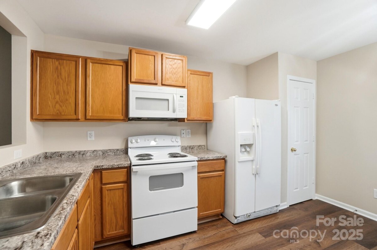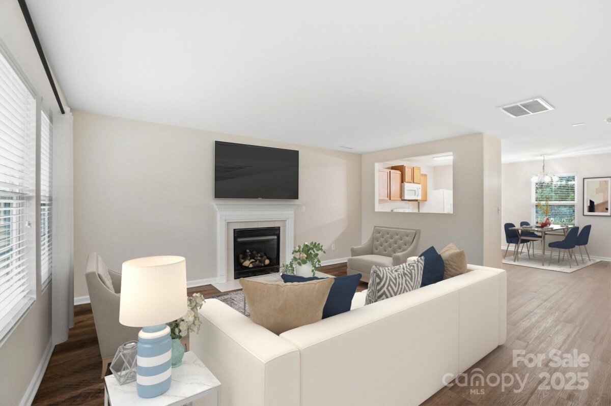 Set on a .325-acre lot at the end of a quiet cul-de-sac in Sonoma Village, this 3-bedroom, 2.5-bath home is move-in ready! The interior has been Freshly painted, and New luxury vinyl plank flooring runs across both levels, creating a cohesive and welcoming flow. The front entry porch provides a welcoming first impression, leading into a spacious living area with a mantled gas fireplace—ideal for relaxing or gathering with friends. The open kitchen includes wood cabinets, refinished counters, a pantry, and an eat-in dining area with a view of the backyard that backs up to a tree line. Upstairs, the primary suite offers a walk-in closet, a refinished bath and countertops with a linen closet. The full secondary bath has also been refinished, including the counters and tub/shower. Two additional bedrooms and a hall closet complete the upper level, offering flexibility for guests, work, or hobbies. A spacious main-level laundry room adds convenience, while the attached two-car garage and long driveway allow for storage and extra parking. The generous lot offers outdoor flexibility and a natural backdrop of trees. With its cul-de-sac location, clean finishes, and functional layout, this home is move-in ready and waiting for you to add your personal touch! Conveniently located within 10 minutes of the U.S. National Whitewater Center, shopping, and easy access to I-485.