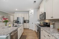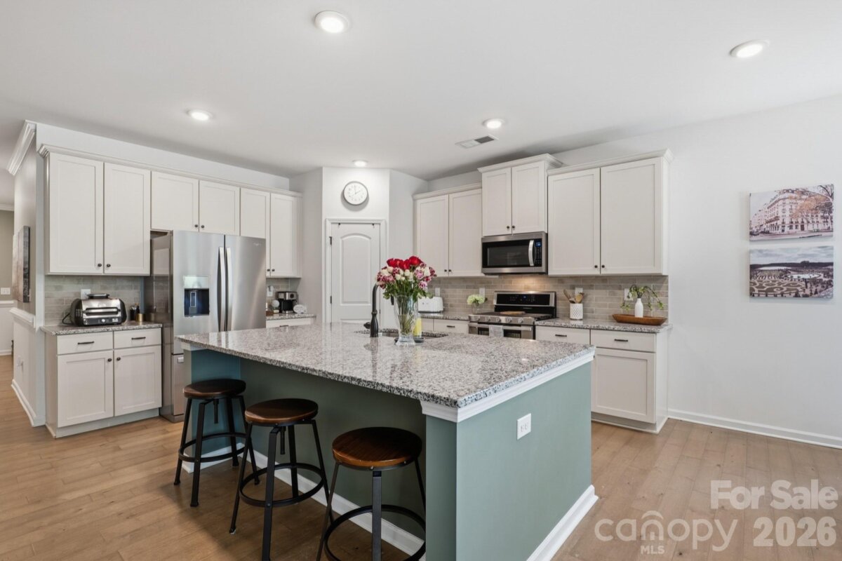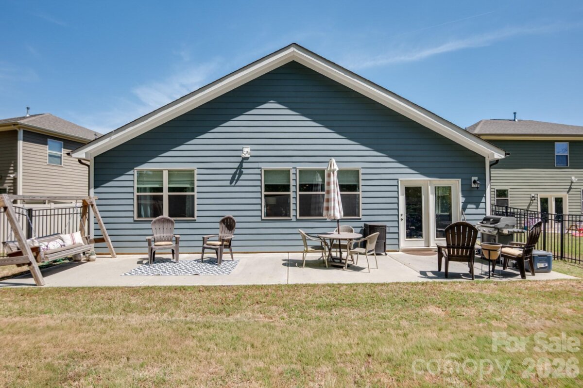 Beautiful ranch home with desirable open floor plan and upgraded finishes in a prime location near Ballantyne! Enjoy outdoor living on the covered front porch or entertain on the extended patio overlooking a private, fenced backyard that backs to wooded views. Interior features include high ceilings, crown molding, and chair rail detailing. Spacious great room with gas fireplace flows seamlessly into the dining area—perfect for entertaining. Gourmet kitchen includes granite countertops, large island, staggered cabinetry, soft-close drawers, stainless steel appliances, and a walk-in pantry. Split-bedroom floor plan offers added privacy, with a spacious primary suite featuring dual vanities, oversized walk-in shower, and large walk-in closet. Generously sized secondary bedrooms. Convenient to Ballantyne, South Charlotte shopping, and dining.