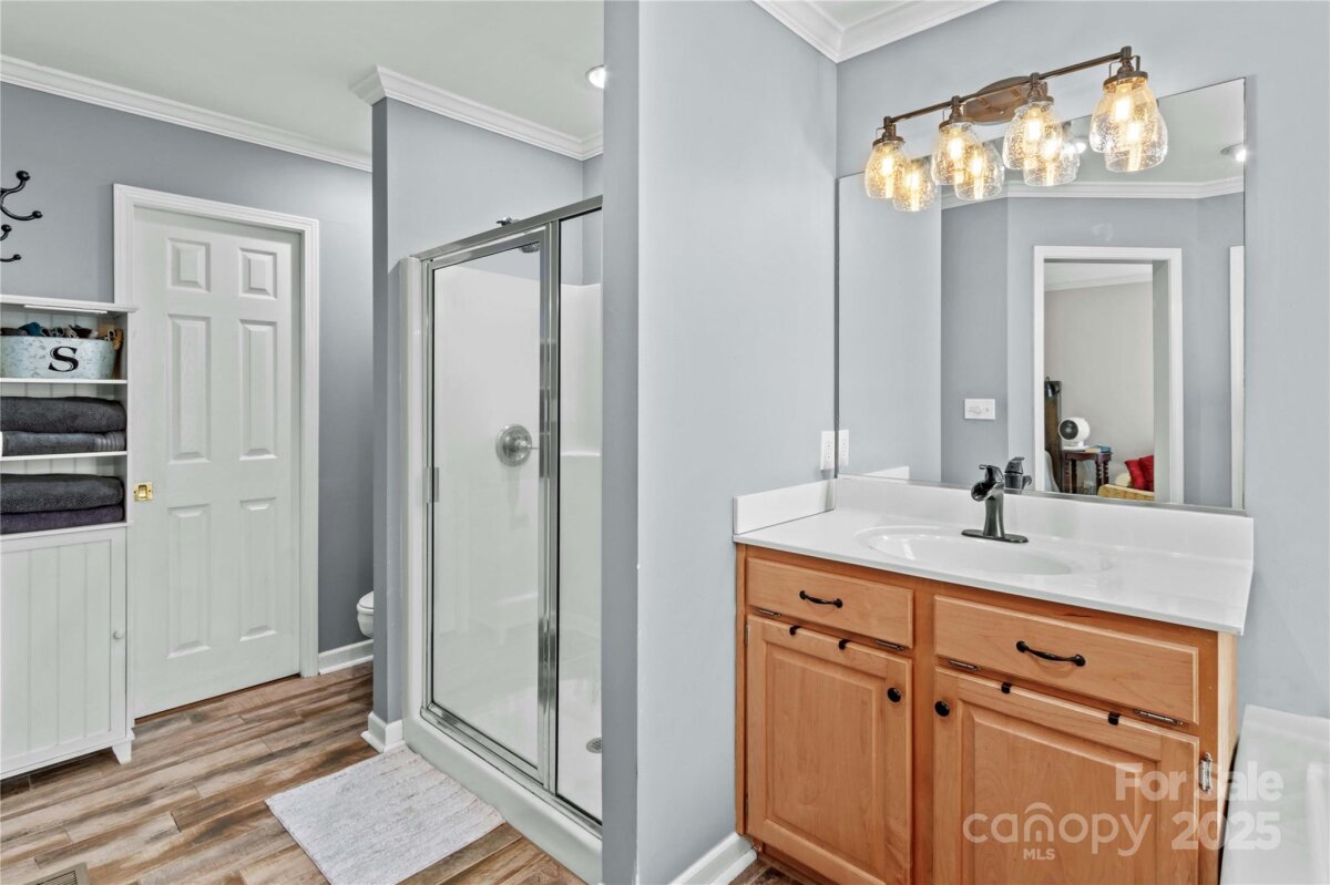 This 3 bedroom, 2.5 bath custom built home has beautiful fixtures and touches throughout! You will love the custom cabinetry throughout and the built-in features. The kitchen is complete with tiled backsplash, granite counters, recessed lighting, a breakfast bar, and lots of natural light. Spacious and open living areas are perfect for entertaining guests. The primary suite is a true oasis and has a garden tub, separate walk-in shower, and dual vanities. The back porch and deck overlooks a fenced yard lined with mature shade trees and is ideal for enjoying relaxing evenings. Amazing location that is minutes from downtown Statesville, shopping, dining, award-winning schools and medical centers, and major interstates 77 and 40.