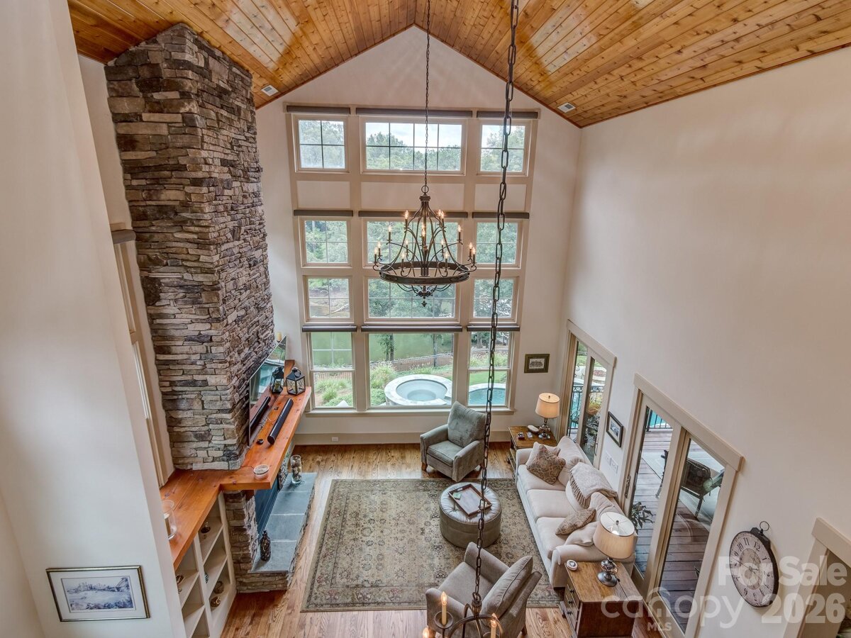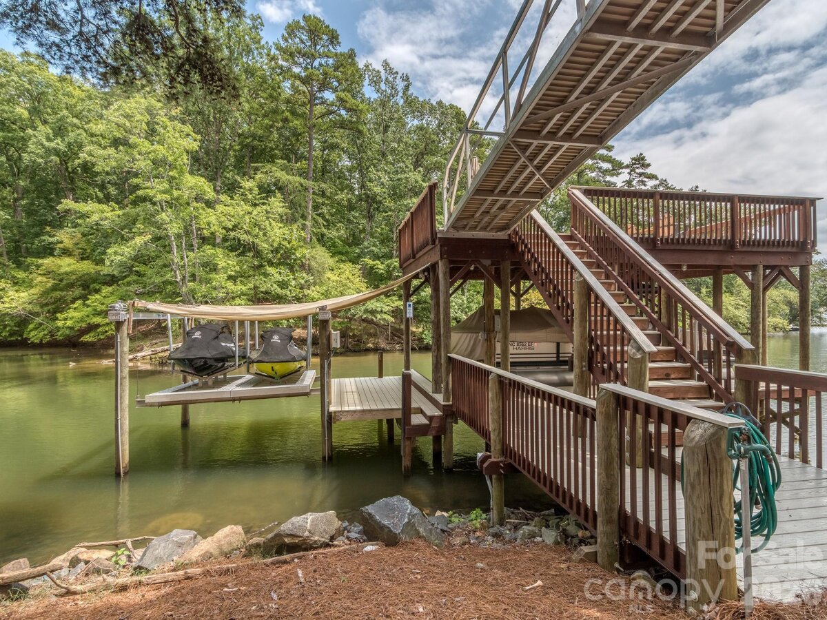 Enjoy resort-style living in this stunning 4-bedroom (each with ensuite baths), 4 full and 2 half-bath waterfront home on beautiful Lake Wylie. Nestled on a cove with easy access to the main water this home features a gourmet kitchen that seamlessly flows into a soaring two-story great room with stone fireplace with stunning water views. The upstairs loft and a fully finished basement with second kitchen, family room, den, and bonus room provide endless space for entertaining or working from home. Outdoor living is unmatched with a main floor covered deck, lower level covered patio, pool with spa, outdoor fire pit and a covered dock with boat lift, dual jet ski lifts, and party deck. Storage is no issue with a three-car garage as well as a golf cart garage with workroom. Conveniently located near shopping, dining, and just 30 minutes to the airport—yet you’ll feel a world away. Perfect as a primary home or weekend retreat.