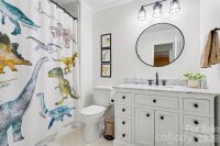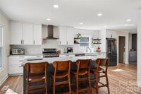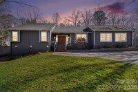 Welcome home to this beautifully updated 3-bedroom, 2-bathroom ranch in the desirable Woodberry Forest neighborhood of Charlotte. Thoughtfully improved during the sellers’ ownership, this home offers comfortable one-level living with both indoor and outdoor spaces designed to enjoy year-round. A covered front porch creates a warm first impression and inviting entry. Inside, the large remodeled kitchen serves as the heart of the home, offering an easy flow for everyday living and entertaining. The dining area is accented by a dry bar, providing additional cabinetry storage and a functional space for serving and entertaining. The cozy living room features a beautiful stone gas log fireplace and a vaulted ceiling with wood beams, adding warmth and character to the main living space. Just off the kitchen, a huge bonus room provides flexible space for a second living area, playroom, home office, or media room. Tucked away down the hall, are the bedrooms and bathrooms. The hall bathroom has been upgraded with a new vanity and a recently reglazed bathtub, while the spacious primary suite features a walk-in closet and private ensuite bath. Major system updates in recent years include a replaced HVAC and water heater, providing added peace of mind for the new owner. The exterior was painted for a modern twist, and most of the windows and interior doors have been replaced for a refreshed, cohesive feel throughout. Outdoor living truly shines here. The large, fully fenced backyard is enhanced by mature trees, and upgraded landscaping and hardscaping in both the front and back. Enjoy time on the refurbished back deck or gather around the newly installed concrete patio and firepit area. A French drain was added in the backyard for improved drainage, and the driveway was repaved to create a flatter parking space at the top for added convenience. This move-in ready ranch blends thoughtful updates, functional living space, and inviting outdoor areas—all in an established Charlotte neighborhood located close to Uptown, Matthews, Southpark and Cotswold. Don't miss out on this beautifully maintained, well-thought out home!