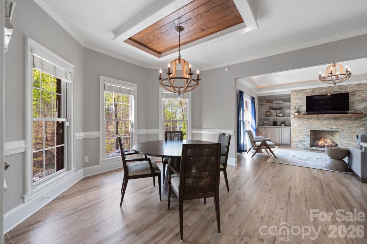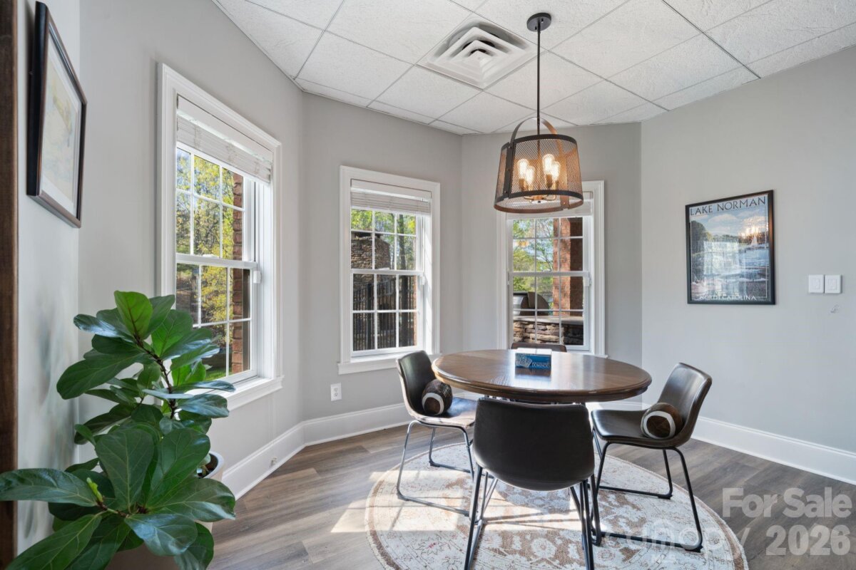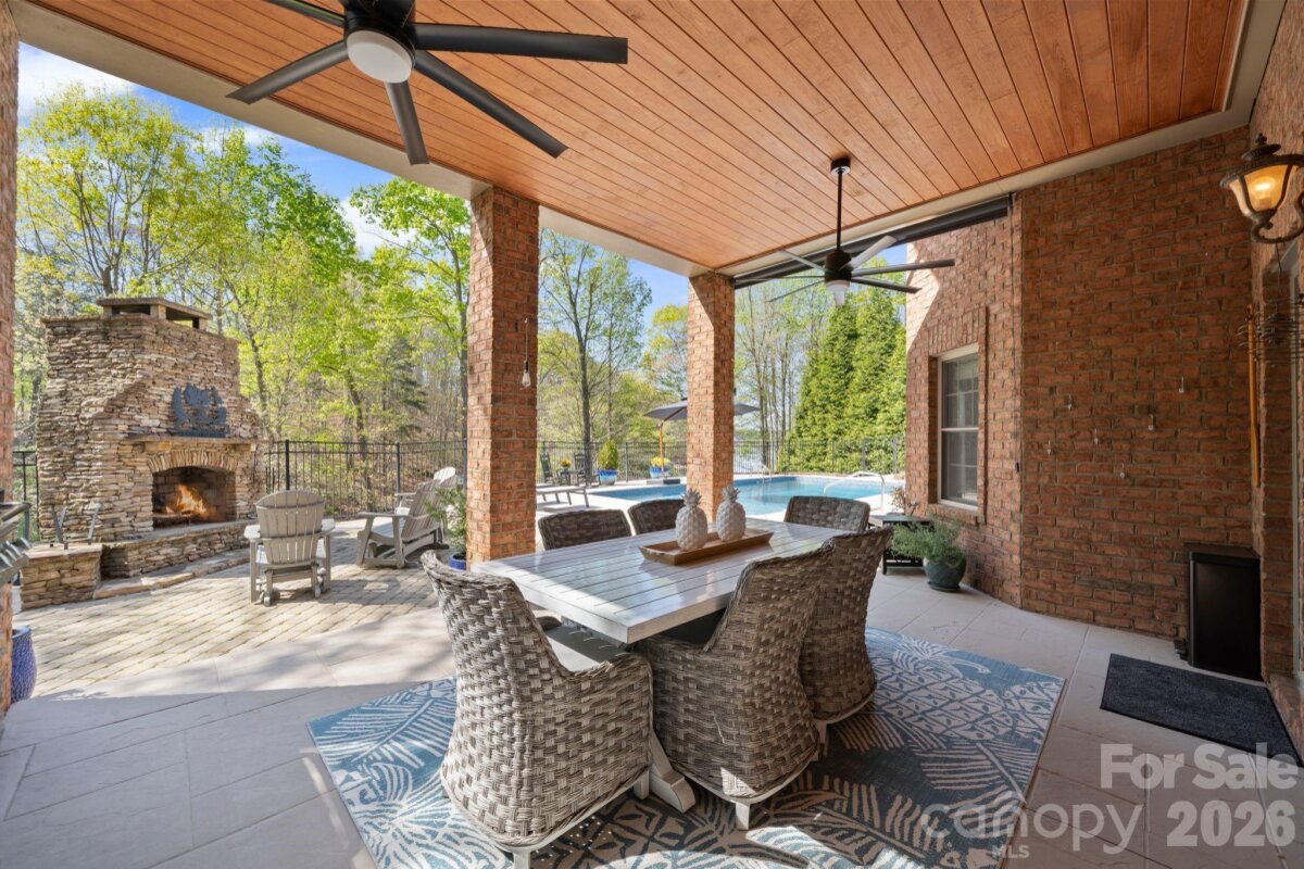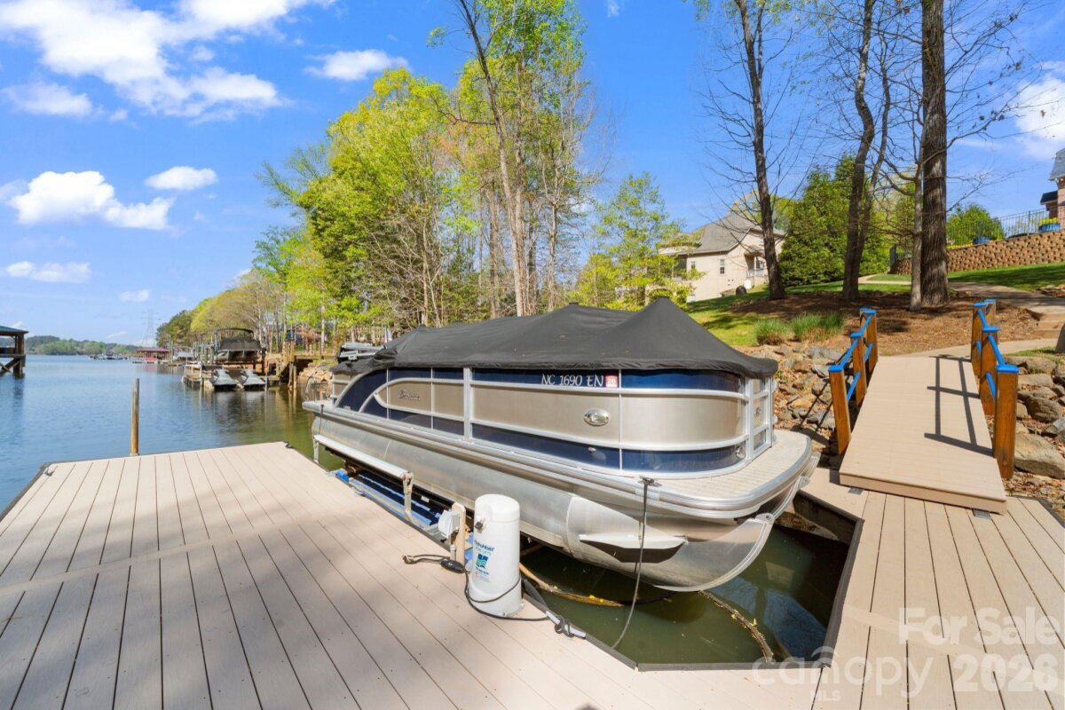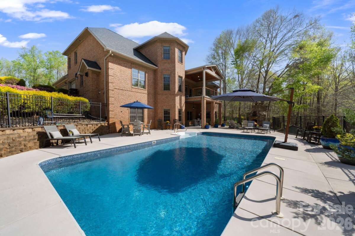 Welcome to this stunning full brick luxury home nestled on .85 acres and offering 4 bedrooms, 5.5 bathrooms, and 5,696 square feet of beautifully updated living space. Designed to balance luxury, privacy, and lifestyle, this move-in ready 2-story home with a fully finished walk-out basement combines timeless design with modern updates and exceptional indoor-outdoor living. A breathtaking two-story living room welcomes you with soaring ceilings, an open balcony overlook, and a floor-to-ceiling stone fireplace that anchors the space. Custom built-in shelving adds both function and architectural interest, while abundant natural light highlights the refined finishes. The open layout flows seamlessly into the 2025 updated kitchen, complete with new cabinetry, countertops, refinished natural wood floors, and new appliances. Pendant lighting adds warmth and style, while a statement Monogram gas range with double oven and range hood, elevates the space. Designed with function in mind, this kitchen offers ample storage, prep space, and a natural flow into adjacent living areas, making it the true heart of the home. A breakfast nook and adjacent family room adds additional space to gather around a second fireplace and lake views. Retreat to your main-level primary suite offering a true retreat with a tray ceiling, ambient lighting, a dedicated sitting area, and direct access to the covered balcony deck. The updated primary bathroom features a soaking tub, walk-in shower, and dual vanities, along with generous his and hers walk-in closets. Additional main level features, formal dining with buffet behind custom barn doors, updated laundry room, redone half bathroom, and elevator lift access to both the basement and second floor. Upstairs, all bedrooms feature new carpet, and each bedroom includes its own private en-suite bathroom, providing comfort and privacy for guests. Walk-in attic storage adds additional functionality. The finished walk-out basement is designed for entertaining, offering a large recreation room, media area, and a bar area with seating, sink, beverage fridge, and additional refrigerator. A full bathroom and office/flex room offer additional convenience, while two seating areas overlook your backyard retreat. Outdoor living is where this home truly shines. Enjoy a covered patio with wood-paneled ceiling and fans, a built-in BBQ with refrigerator, and a beautifully designed backyard featuring a heated pool with new liner, and expansive patio space. A custom stone wood-burning fireplace creates the perfect setting for year-round enjoyment. The fenced pool area enhances both privacy and functionality. Make your way to the lake down the concrete path to your newly refinished Trex dock with boat lift and enjoy year round Lake Norman water. Additional features include a dog run, 3-car garage with epoxy floors, two hot water heaters, an oversized well tank supporting the home’s filtration system, water softener, heated and non heated storage, and Generac generator. This Troutman location taps into the larger Lake Norman lifestyle, with boating, fishing, trails, public lake access, and the shops and dining of downtown Troutman are all part of the appeal for those seeking a private lakeside retreat.